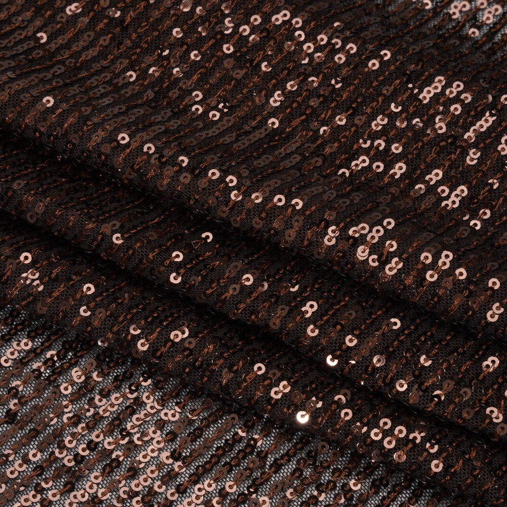 1 Yard Chocolate Brown Stretch Polyester Mesh Fabric Baby Sequins Stripes 50 inch Width