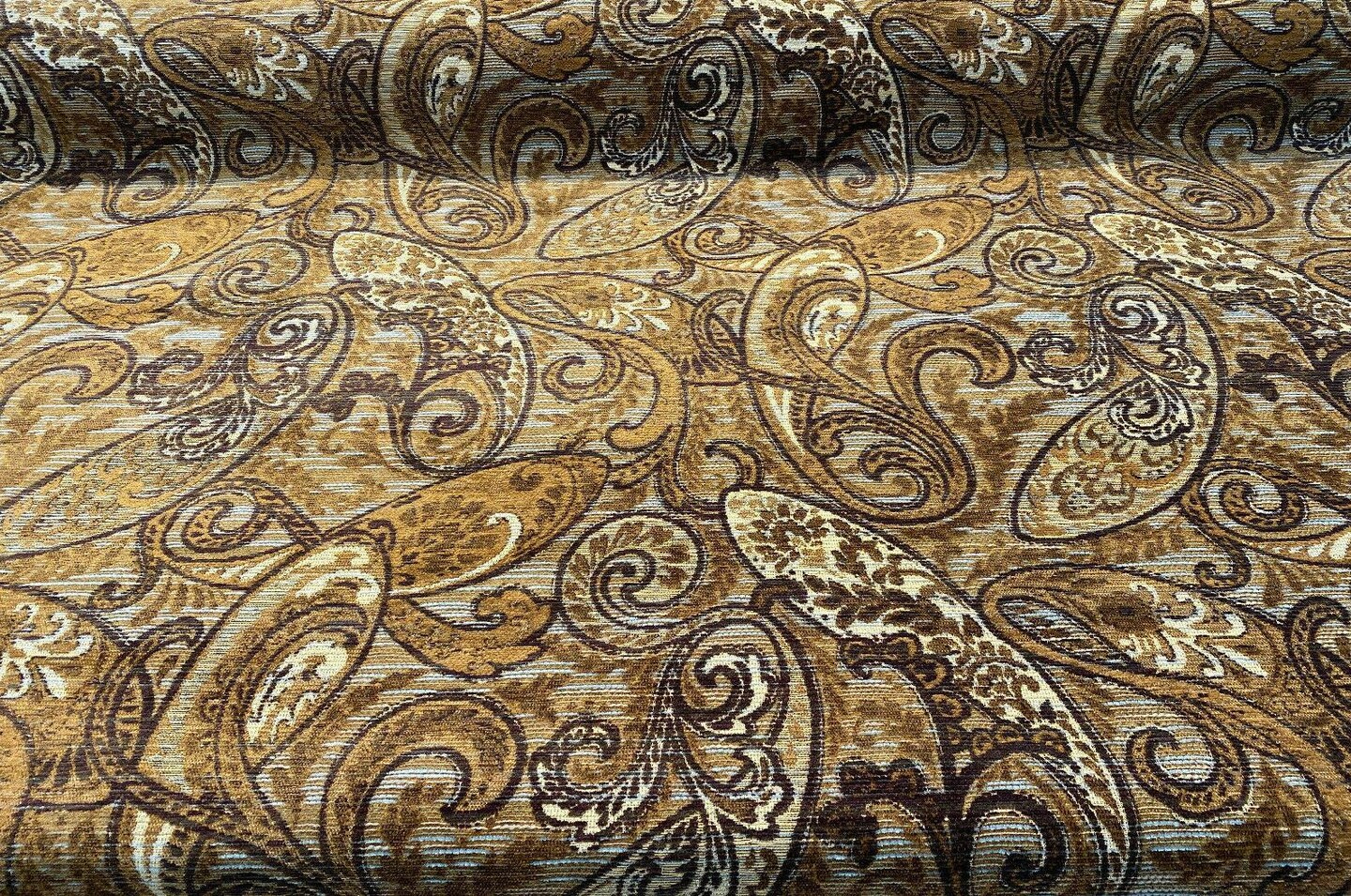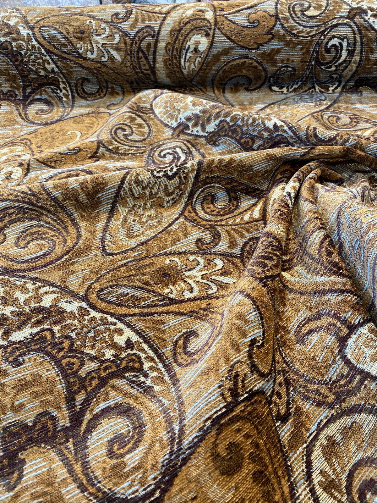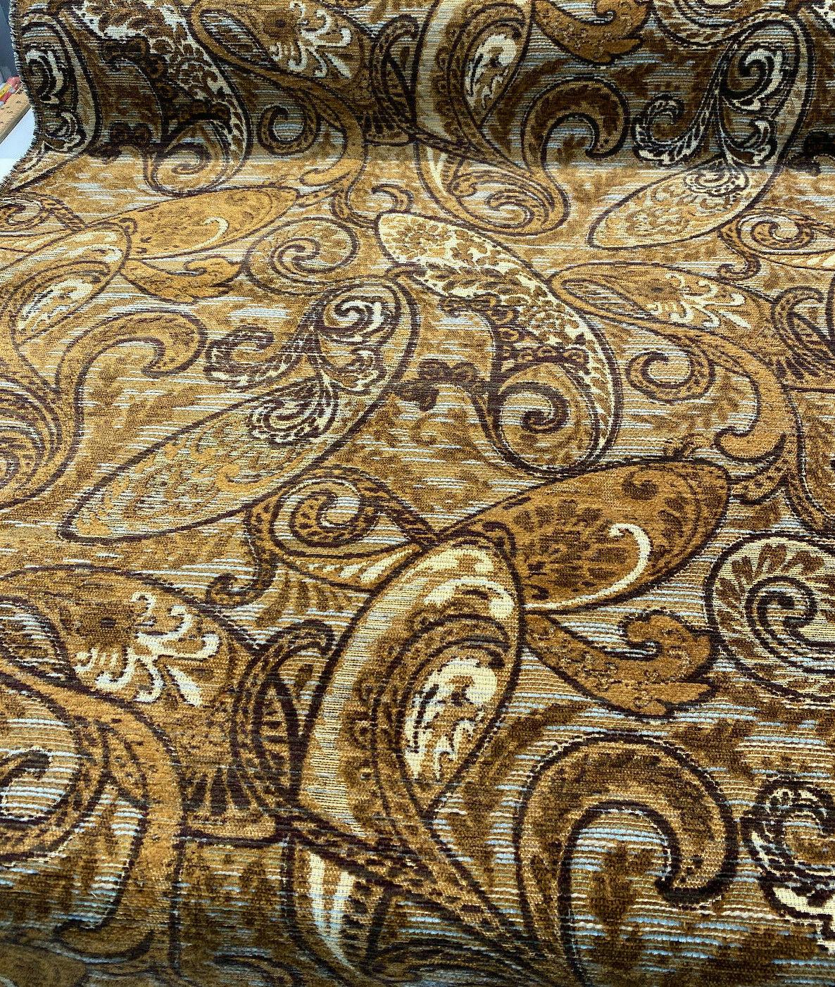 1 Yard Chocolate Teal Paisley Chenille Upholstery Fabric 90% Poly Chenille 10% Rayon 57 Inch Width