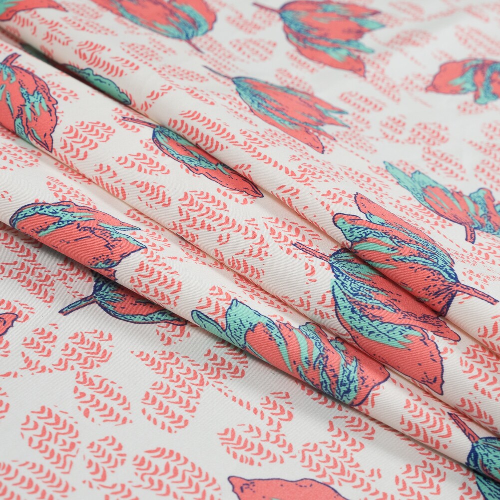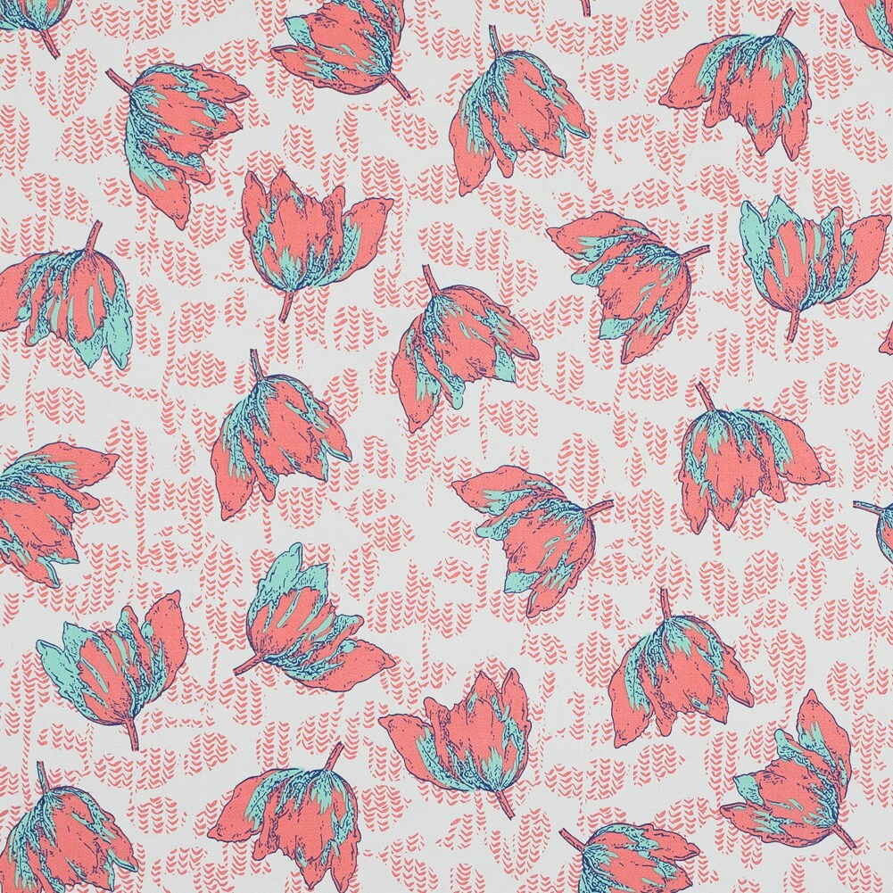 1 Yard Coral and Seafoam Floral Stretch Cotton Sateen Fabric