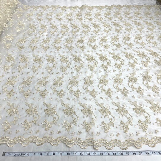 1 Yard Corded Bridal Lace Fabric Embroidered on 100% Polyester Net Mesh - 54" Wide