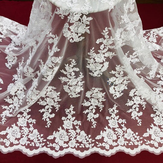 1 Yard Corded Bridal Lace Fabric Embroidered on Polyester Net Mesh 54 inch Width