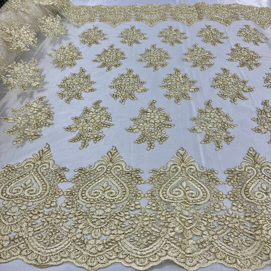 1 Yard Corded Lace Fabric Embroidered on 100% Polyester Net Mesh 52" Wide