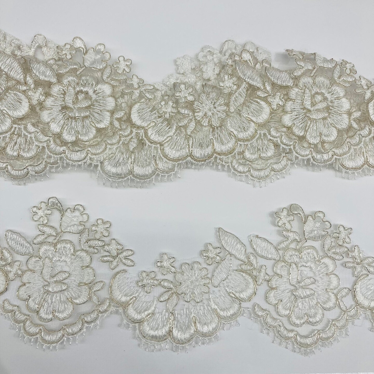 1 Yard Corded Lace Trimming on Net Mesh | 3.5" Wide | Handmade Embroidered Trim for Dresses & Costumes