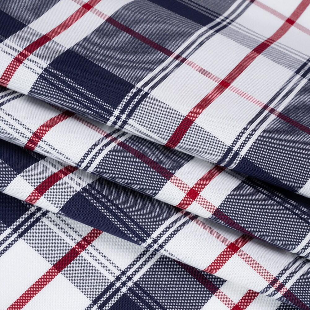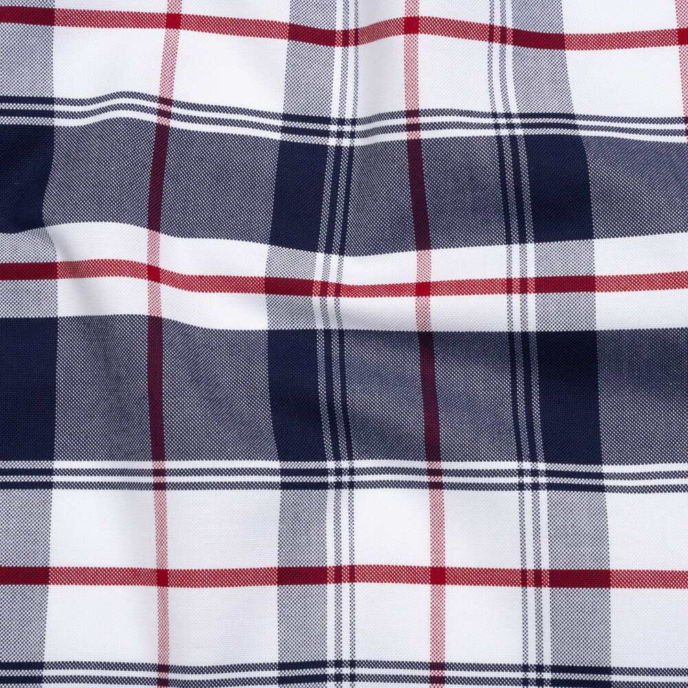 1 Yard Cotton Oxford Shirting Dark Blue Cranberry Red and White Plaid Deadstock Fabric