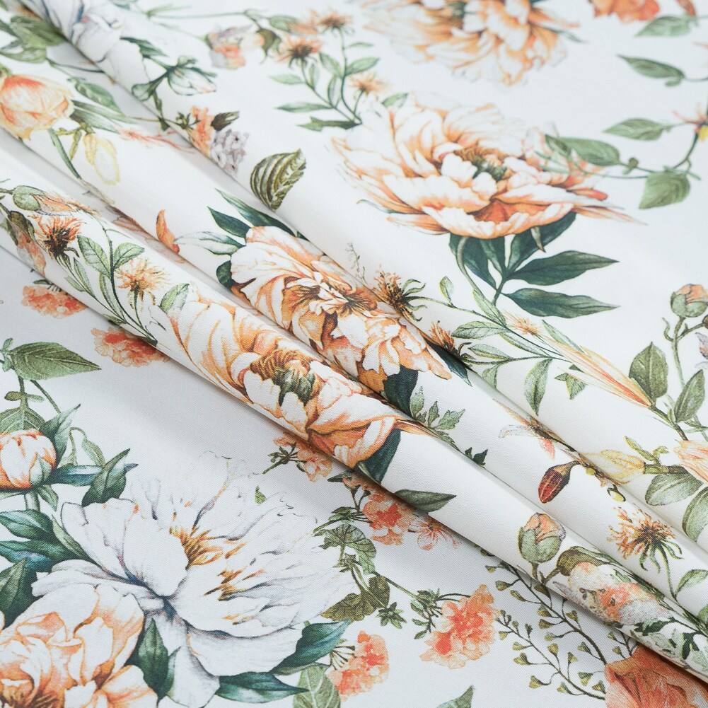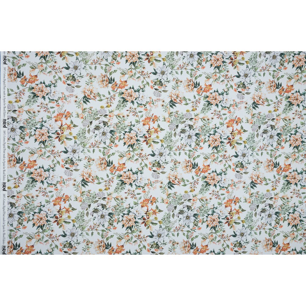 1 Yard Cotton Poplin Orange and Green Floral Les Fleurs de Lamour Print Fabric
