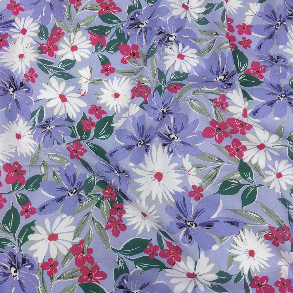1 Yard Cotton Poplin Print Periwinkle Pink and White Floral Fabric