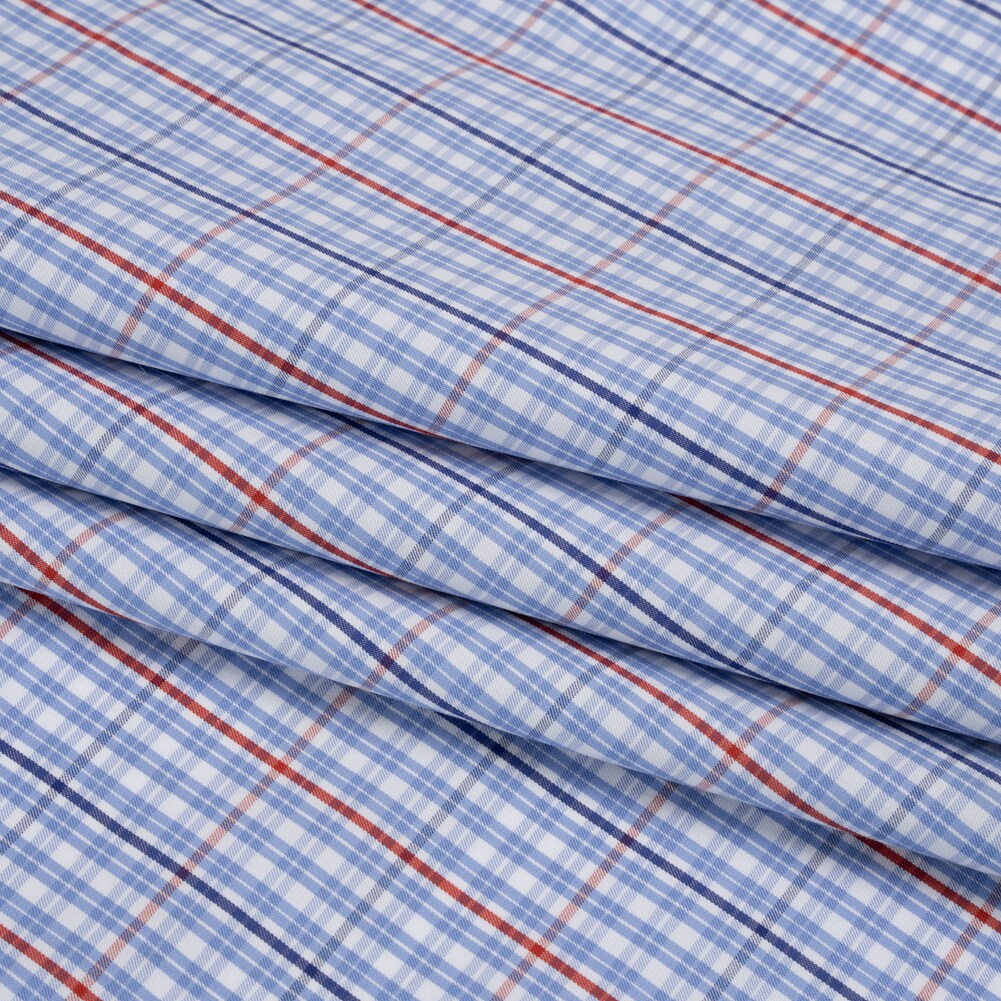 1 Yard Cotton Twill Shirting Light Blue, Navy and Red Plaid Deadstock