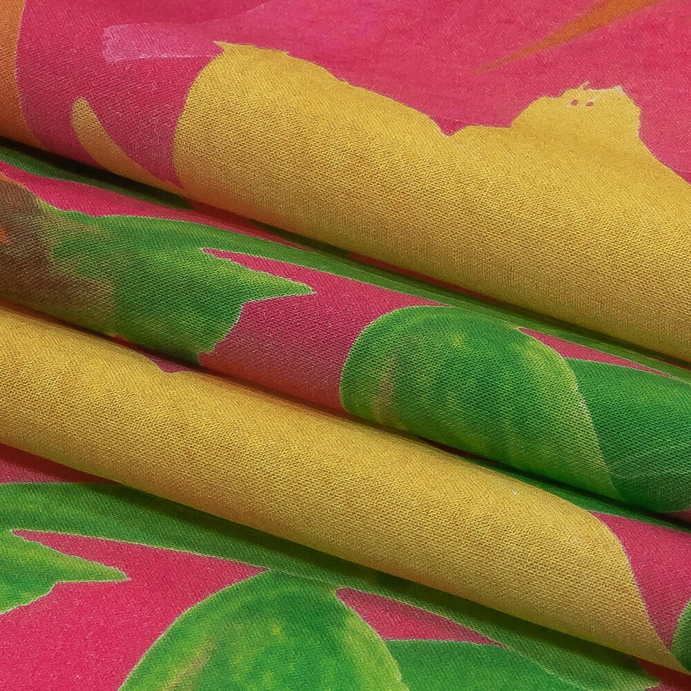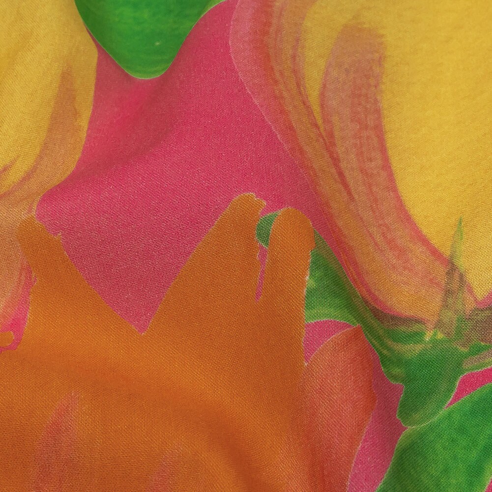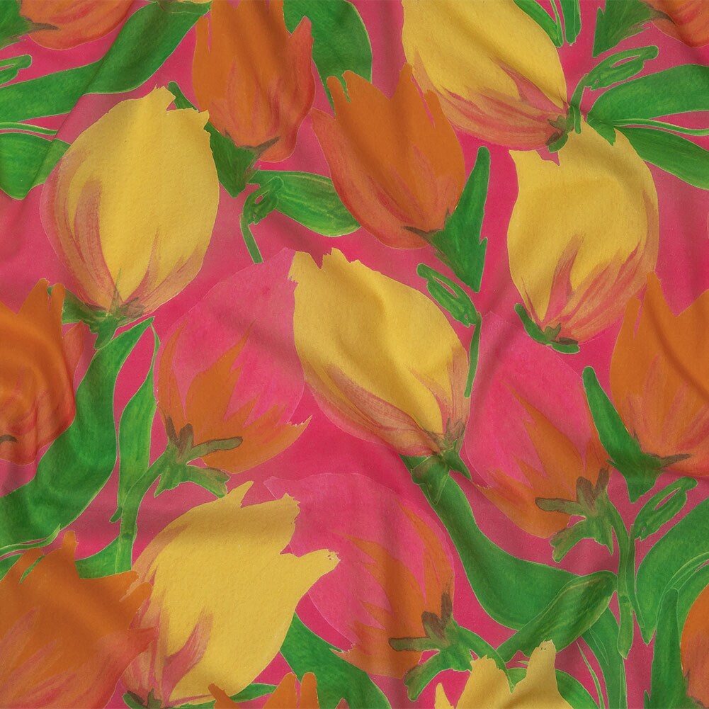 1 Yard Cotton Voile Fabric Pink and Orange Tulips Keukenhof Print