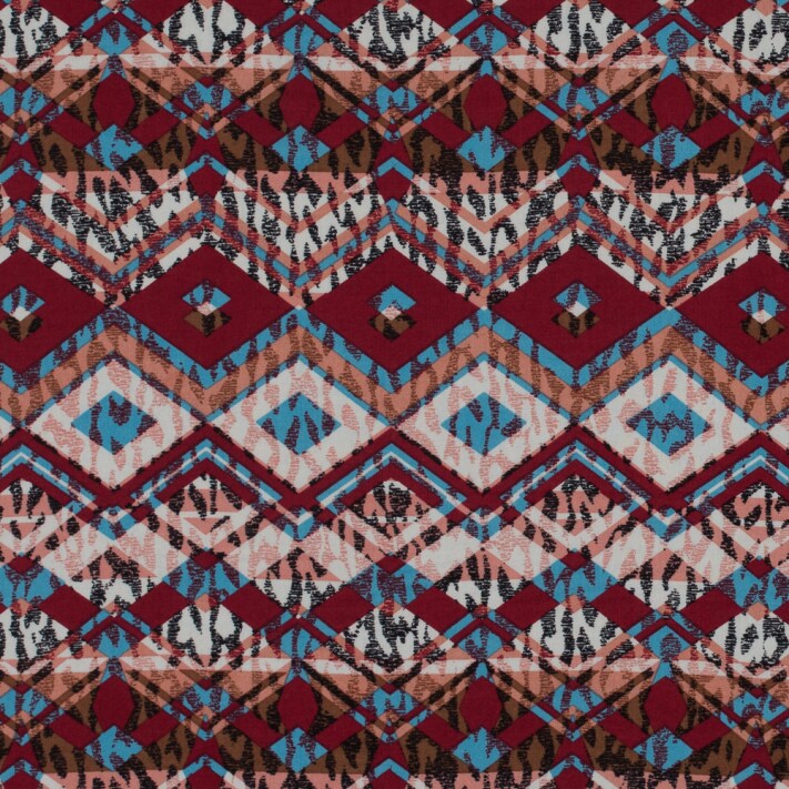 1 Yard Cotton Voile - Red, Blue and Peach Geometric Over Abstract 52" Width