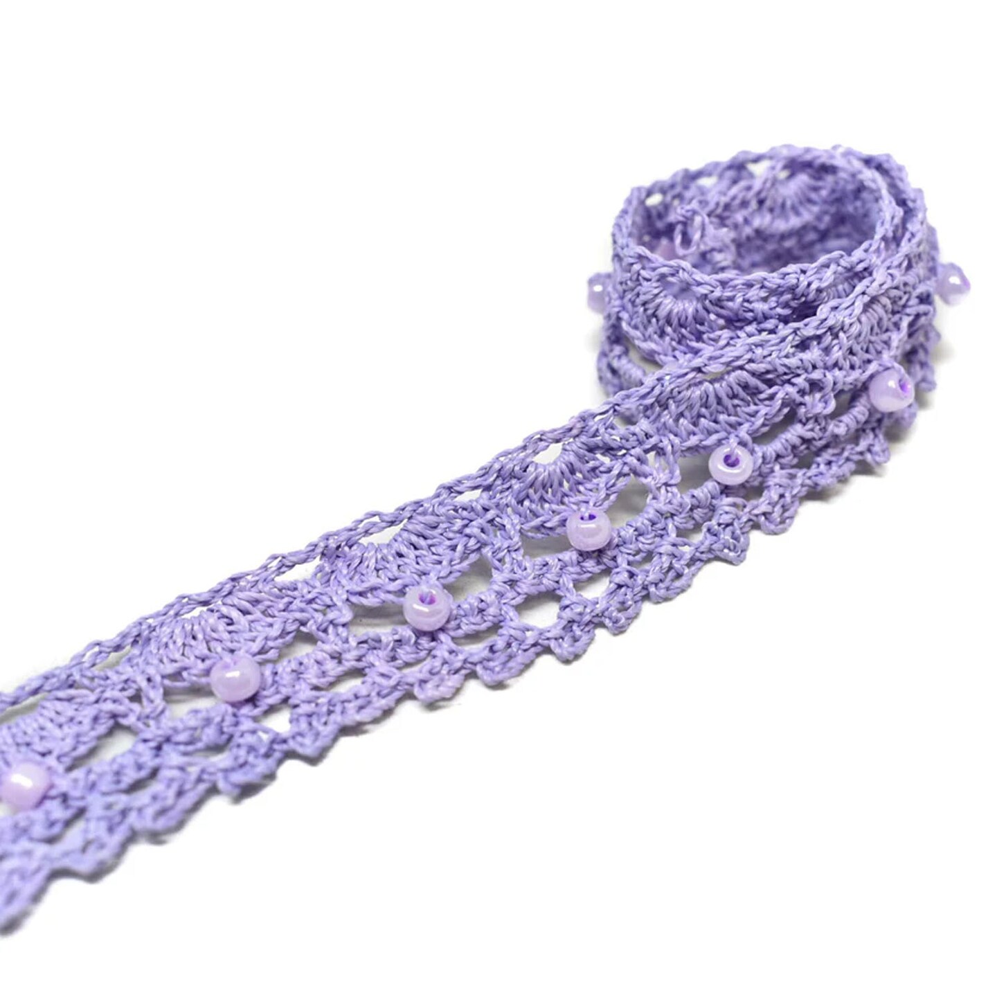 1 Yard Crochet Beaded Trim Decorative DIY Craft Ribbon 0.625 inch Width
