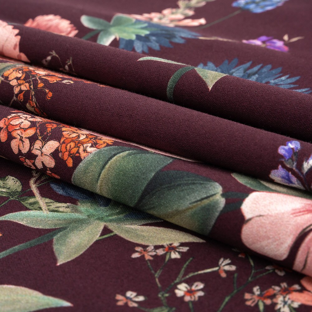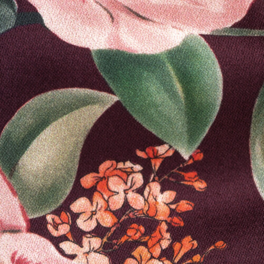 1 Yard Deep Purple Floral Border Stretch Cotton Sateen Fabric