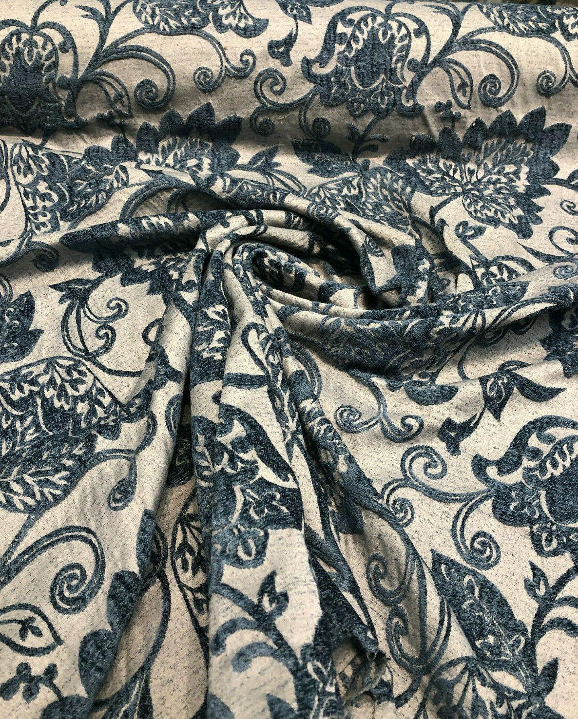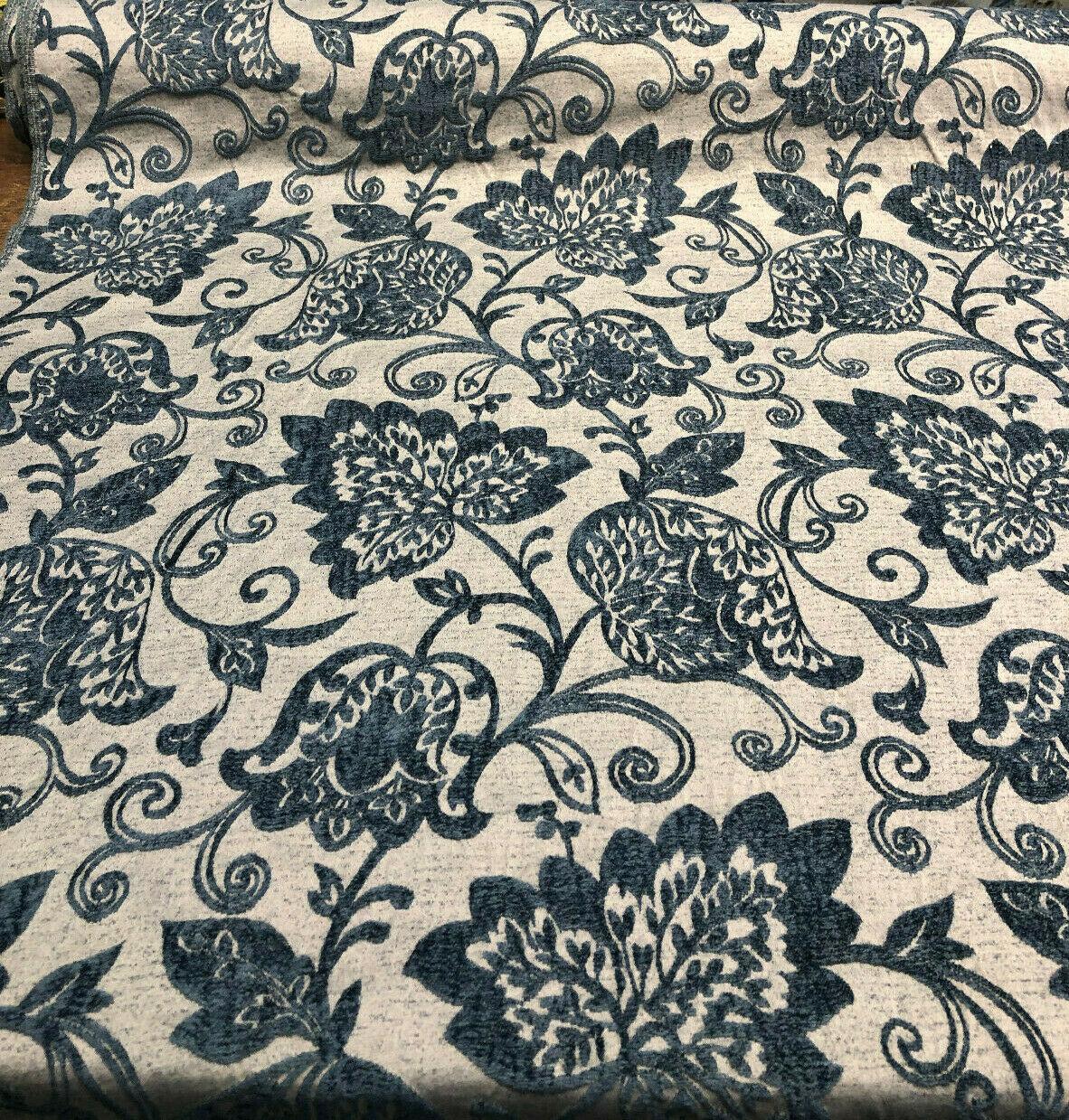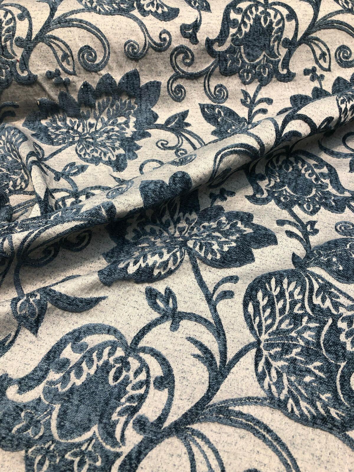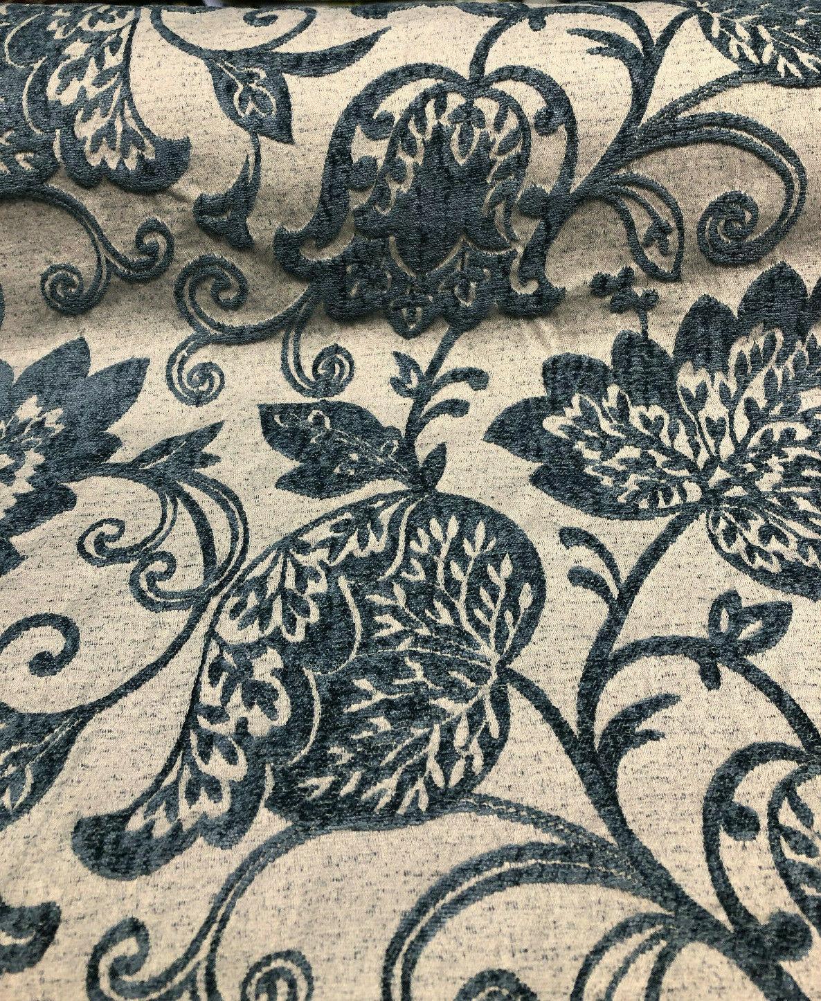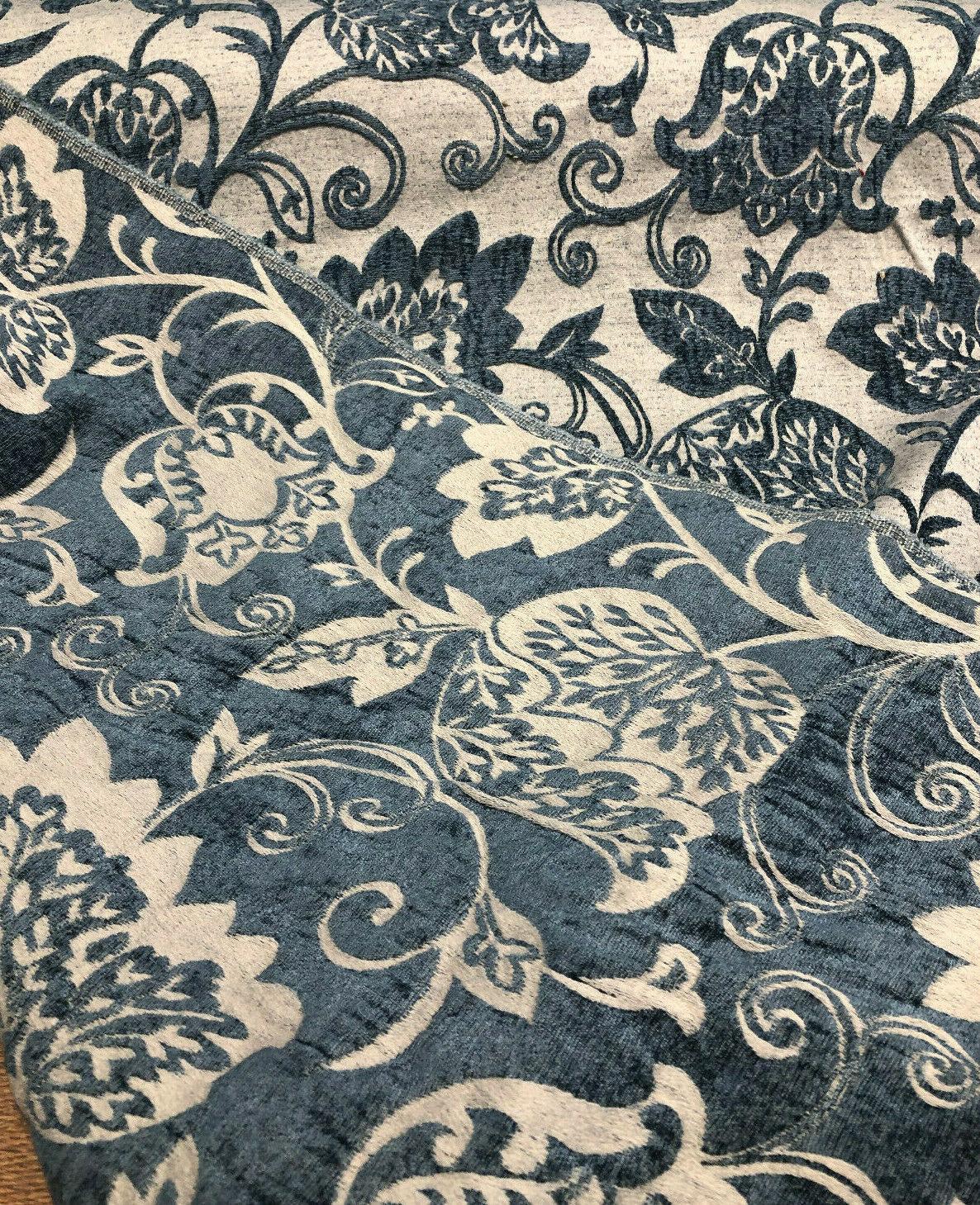 1 Yard Deep Teal Blue Beige 40% Polyester 60% Viscose Upholstery Fabric