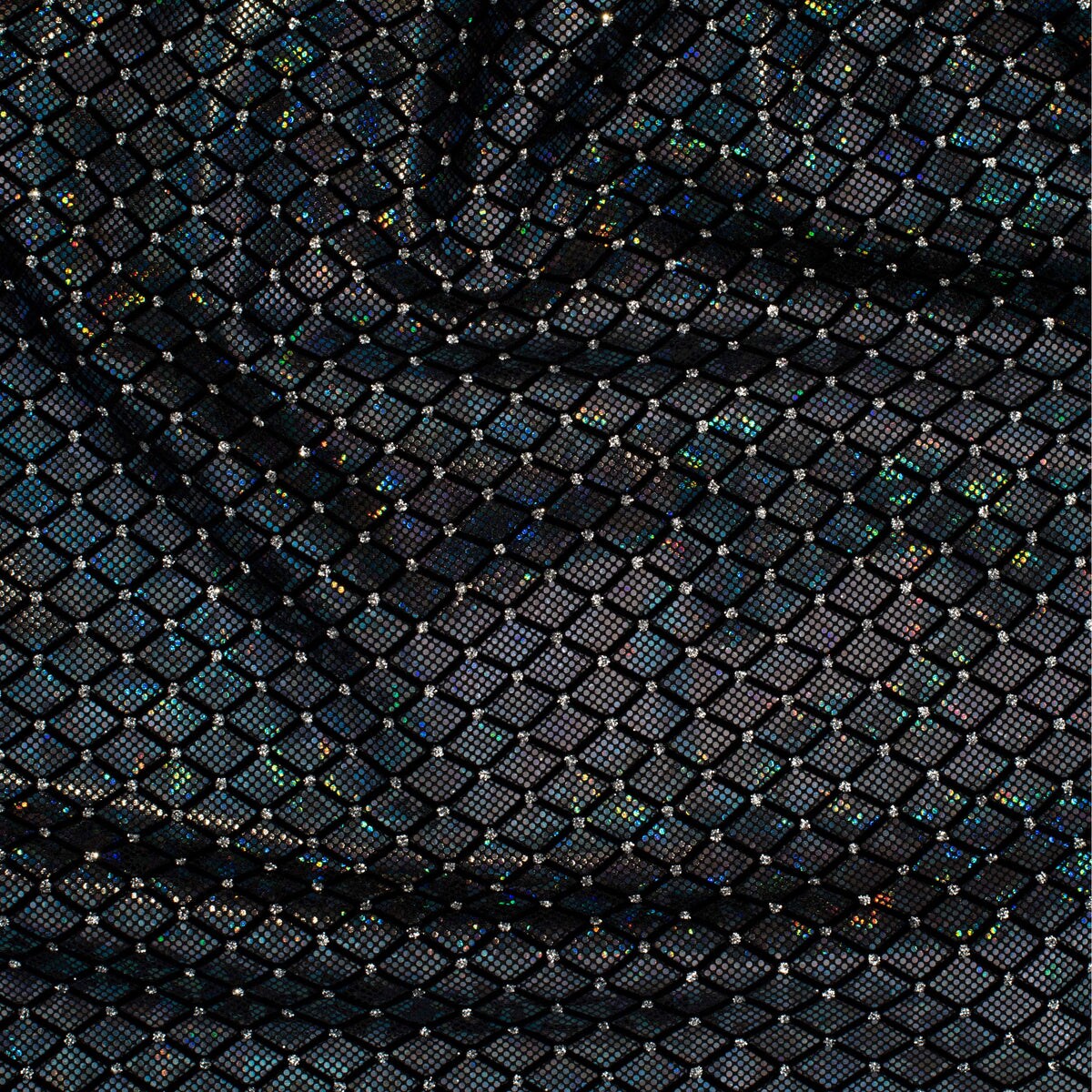 1 Yard Diamond Flocking Glitter Hologram Nylon Spandex Tricot Fabric for Cosplay 58/60 Inch Width
