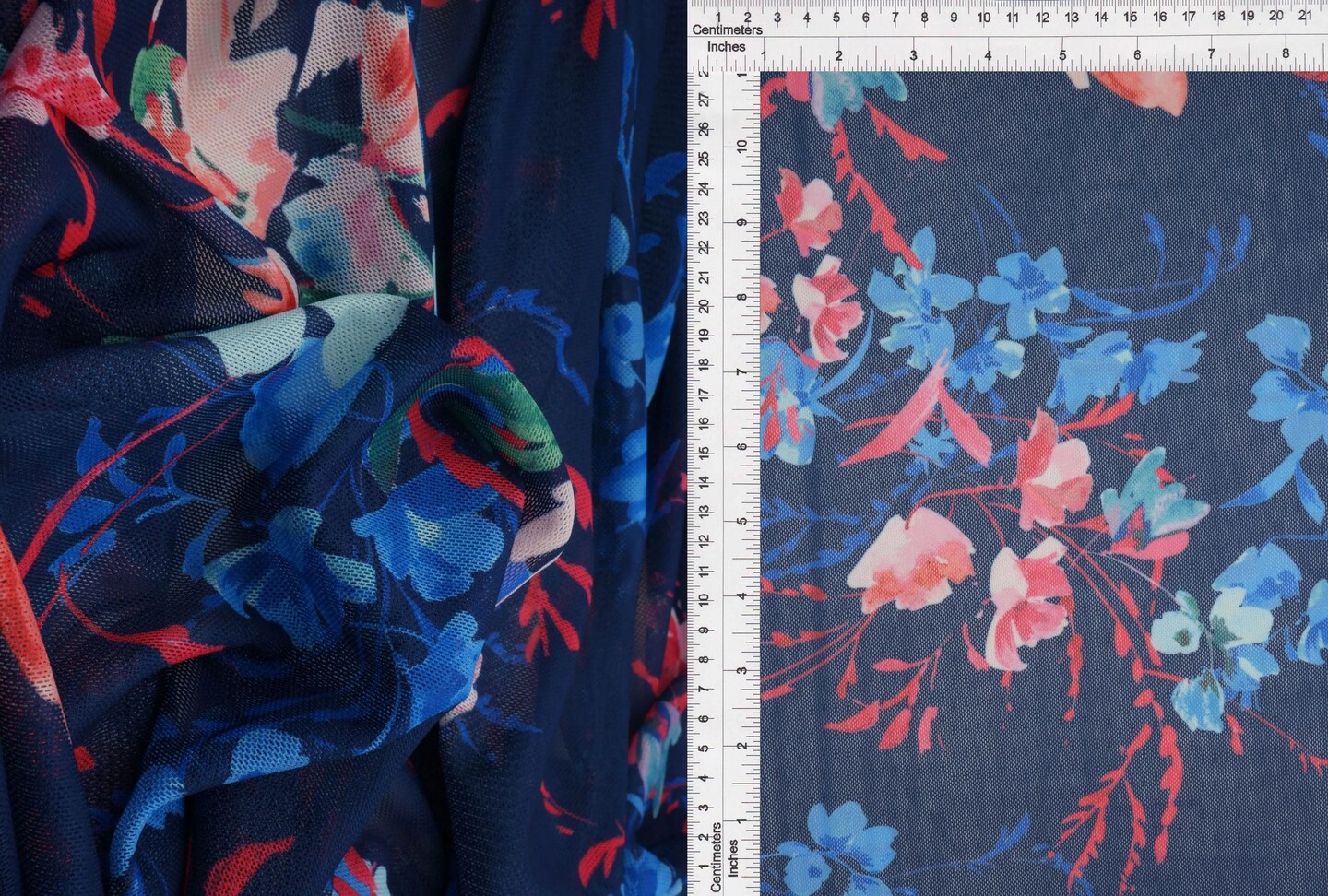 1 Yard Digital Floral Mesh Knit Fabric, 54″ Wide Polyester Spandex Blend