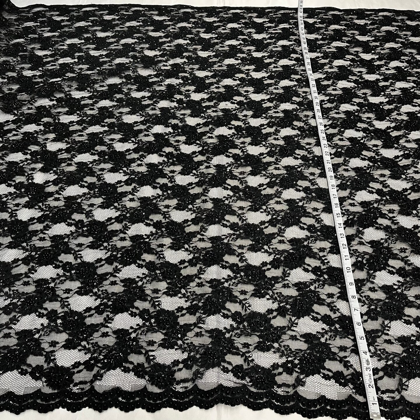 1 Yard Dramatic Red Beaded Corded Lace Fabric Embroidered on Net Mesh 56 inch Width