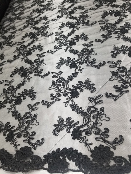 1 Yard Elegant Black Floral Embroidery Lace Mesh Fabric for Wedding Dresses 50 Inch Width