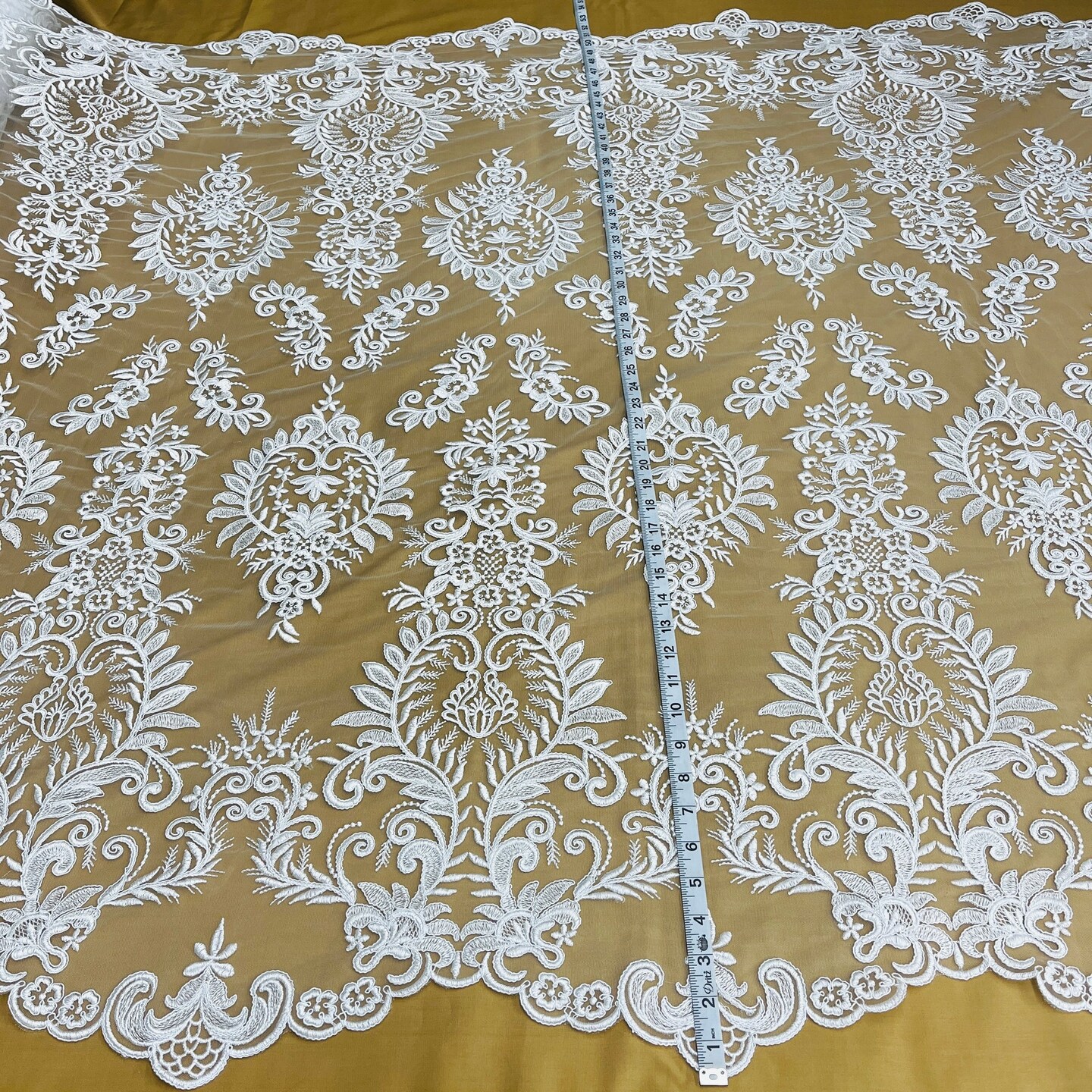 1 Yard Elegant Corded Bridal Lace Fabric Embroidered on 100% Polyester Net Mesh 52" Width