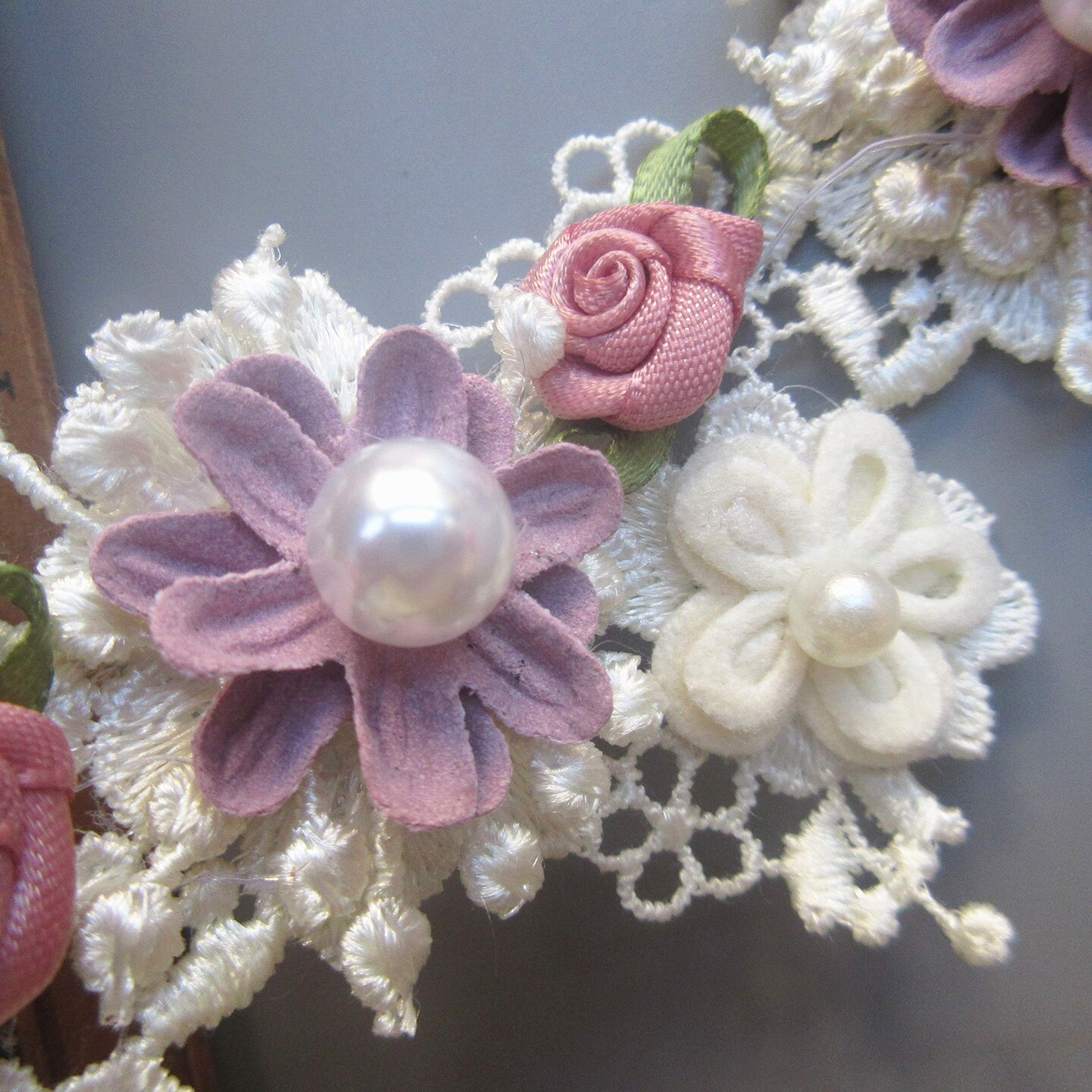 1 Yard Elegant Vintage Style Apricot Polyester Lace Flower Pearl Beads Ribbon Trim in 5.5 cm Width for Wedding Decoration