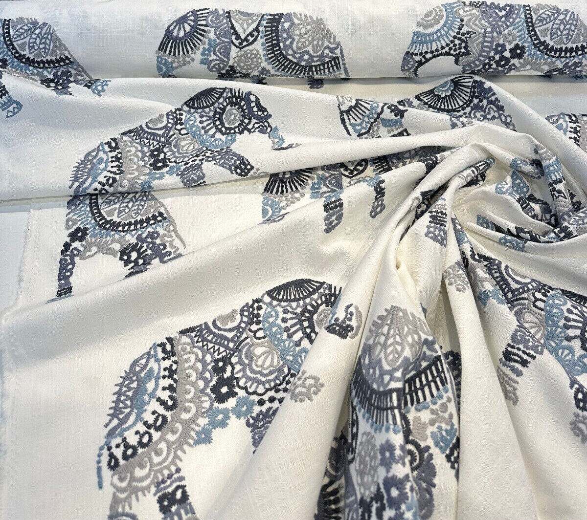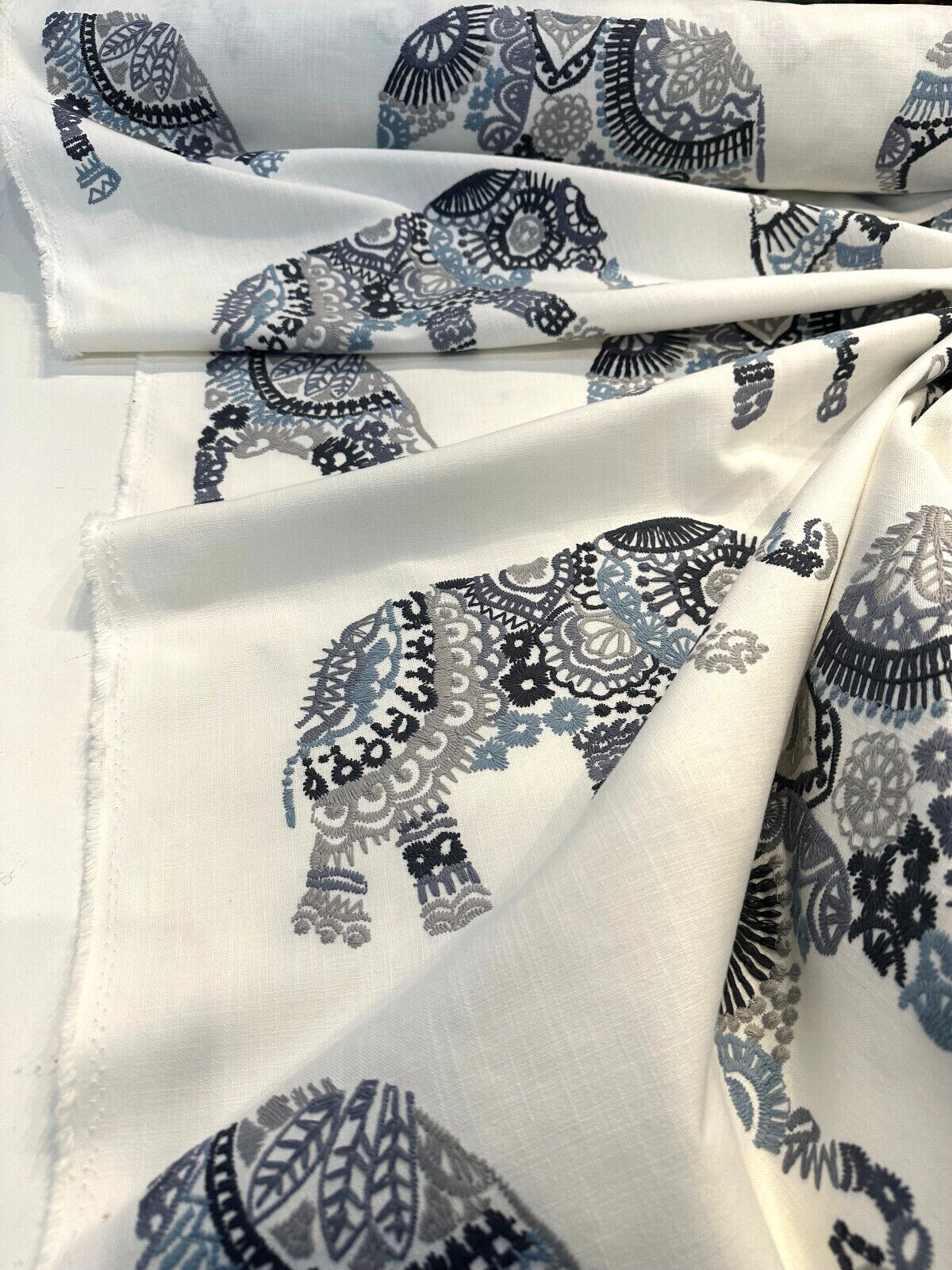 1 Yard Elephant Stitch Make Your Mark Blue Smoke Embroidered Animal Fabric 54 Inches Wide