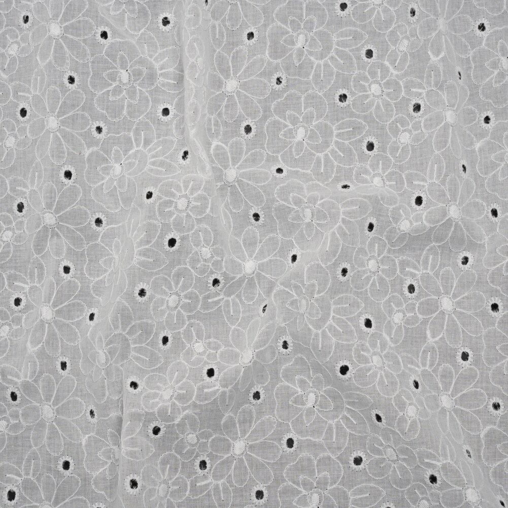 1 Yard Embroidered Eyelet Cotton Voile White Field of Flowers Fabric