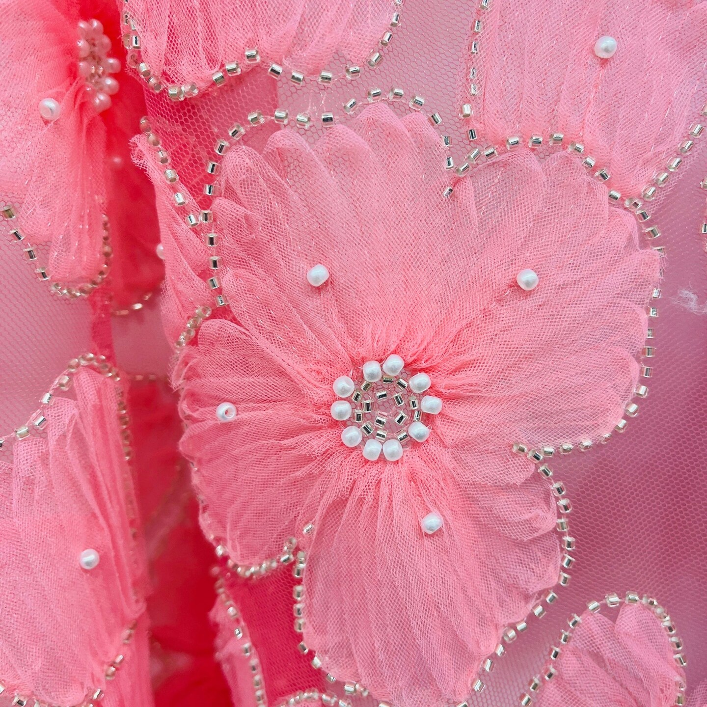 1 Yard Exquisite Champagne Beaded 3D Floral Lace Fabric on Net Mesh 52 inch Width
