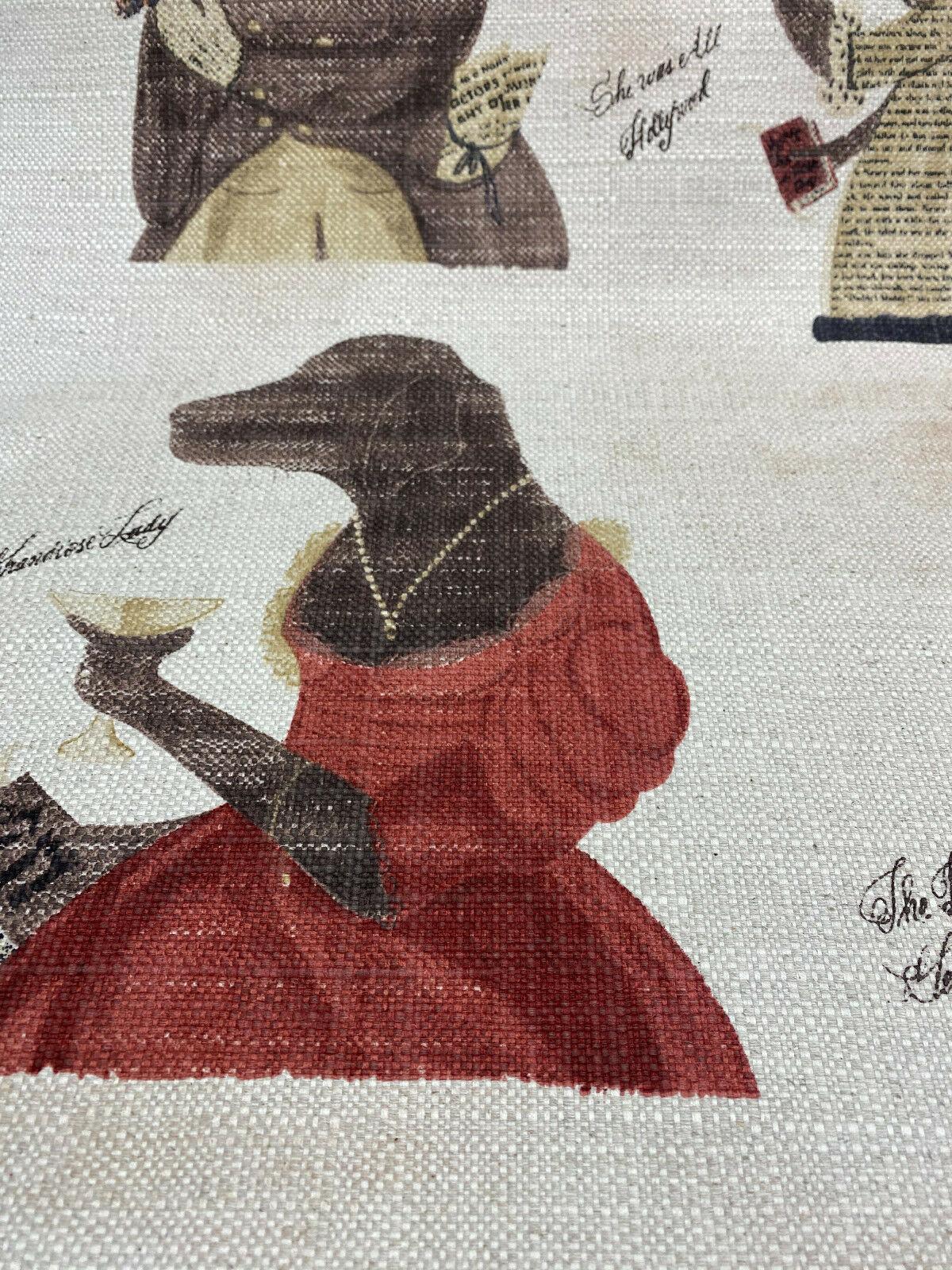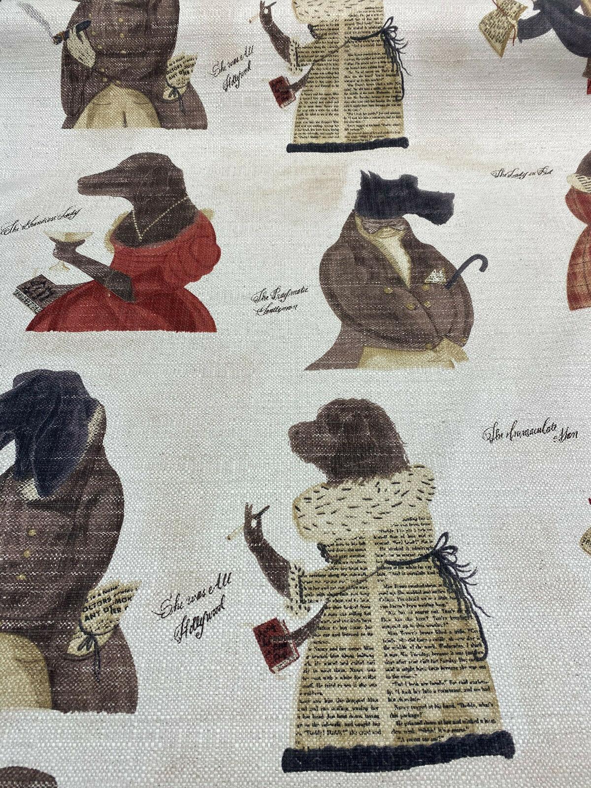 1 Yard Fancy Nautical Dogs Top Hat Linen Blend Upholstery Fabric 56 Inch Width 66% Cotton 23% Polyester 11% Linen