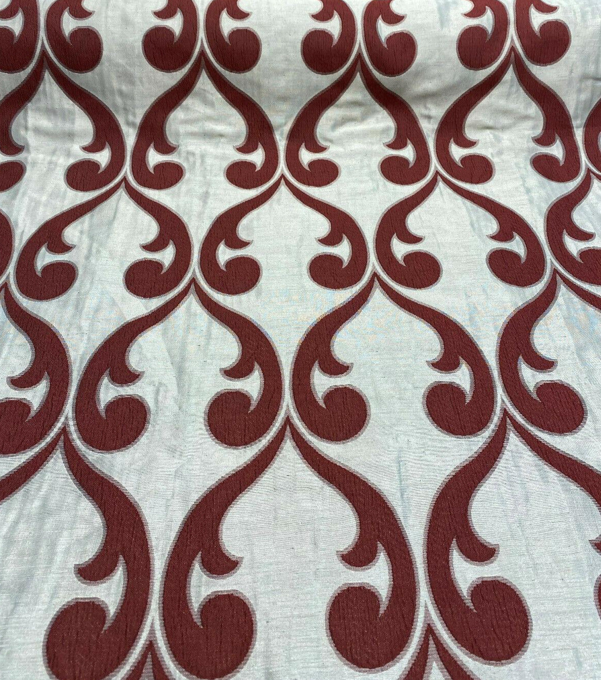 1 Yard Fleur De Lis Ruby Red 100% polyester jacquard Reversible Fabric 58 Inches Wide