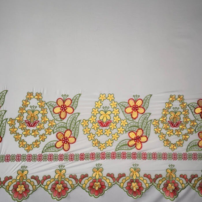 1 Yard Floral Embroidered Border Polyester Fabric 56 inches width, Durable & Elegant Textile