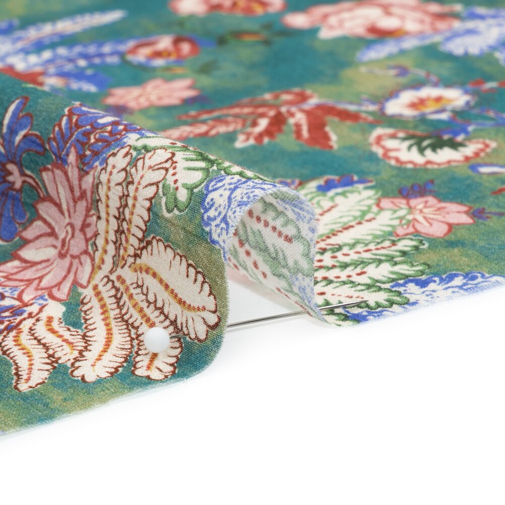 1 Yard Forest Green Red and Blue Floral Crinkled Cotton Gauzy Fabric
