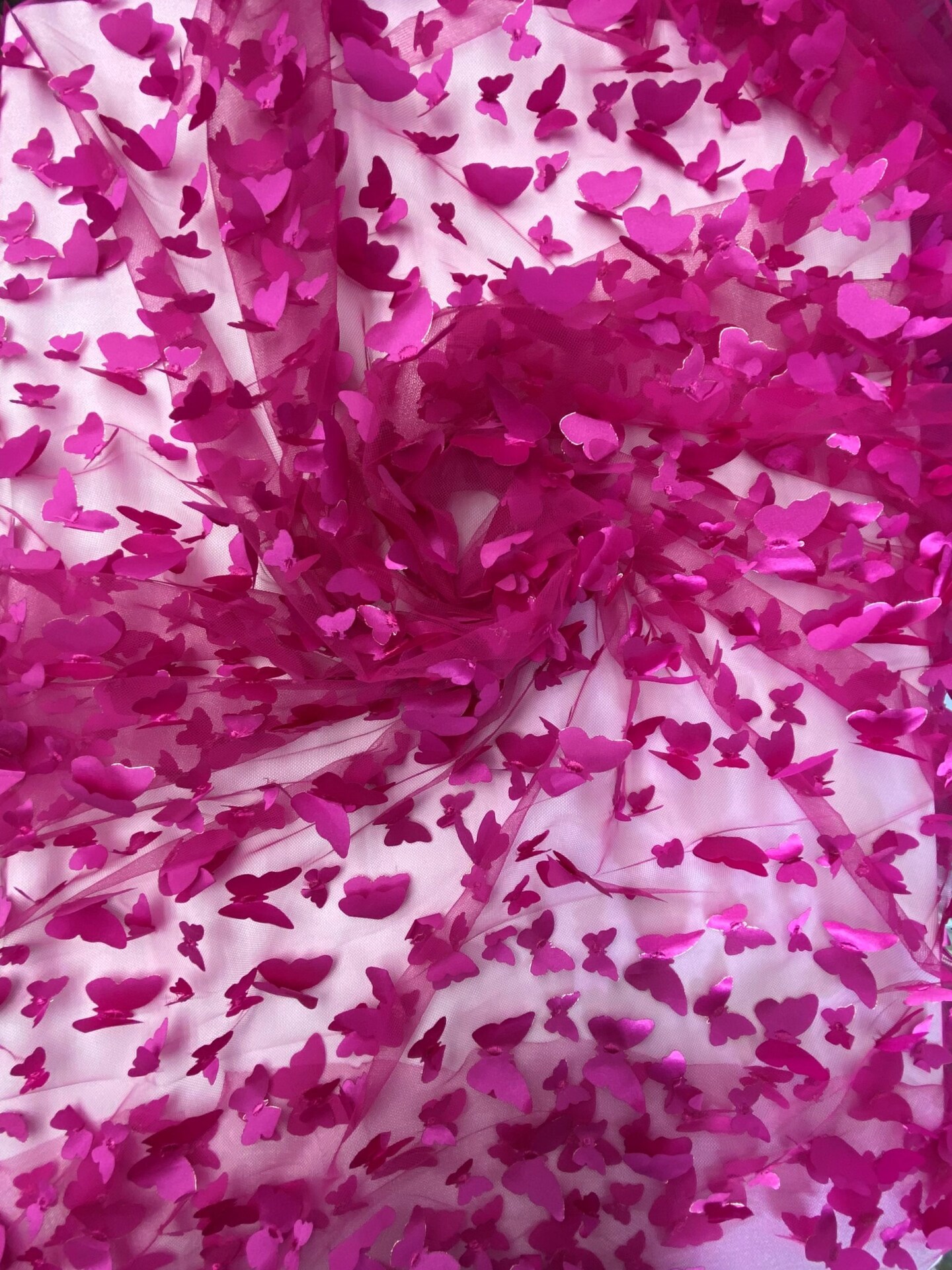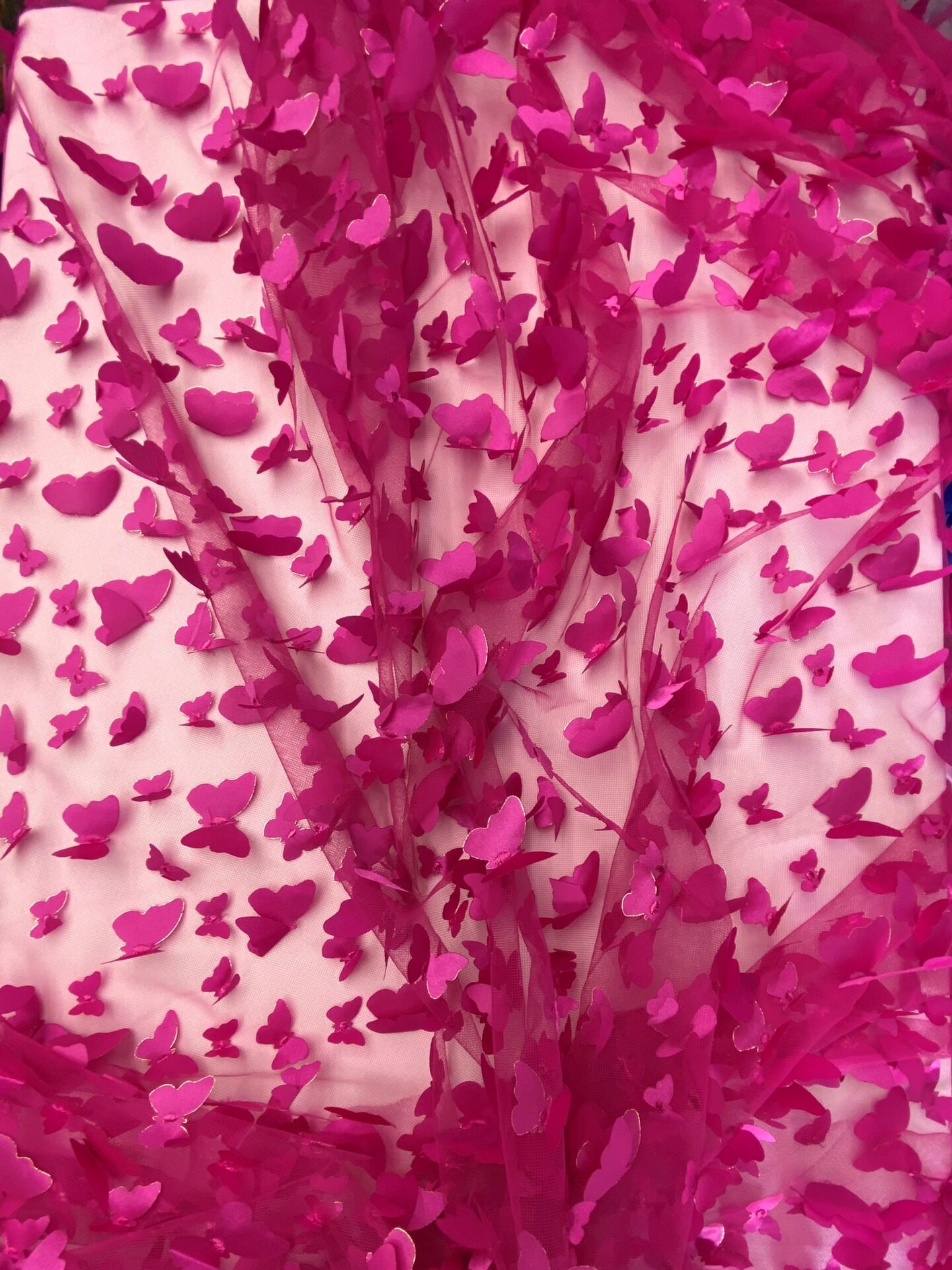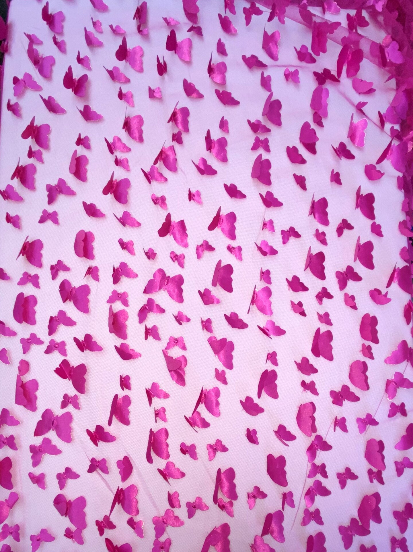 1 Yard Fuchsia 3D Butterfly Stretch Mesh Fabric with Satin Appliqué for Costumes and Dresses 54 Inch Wide