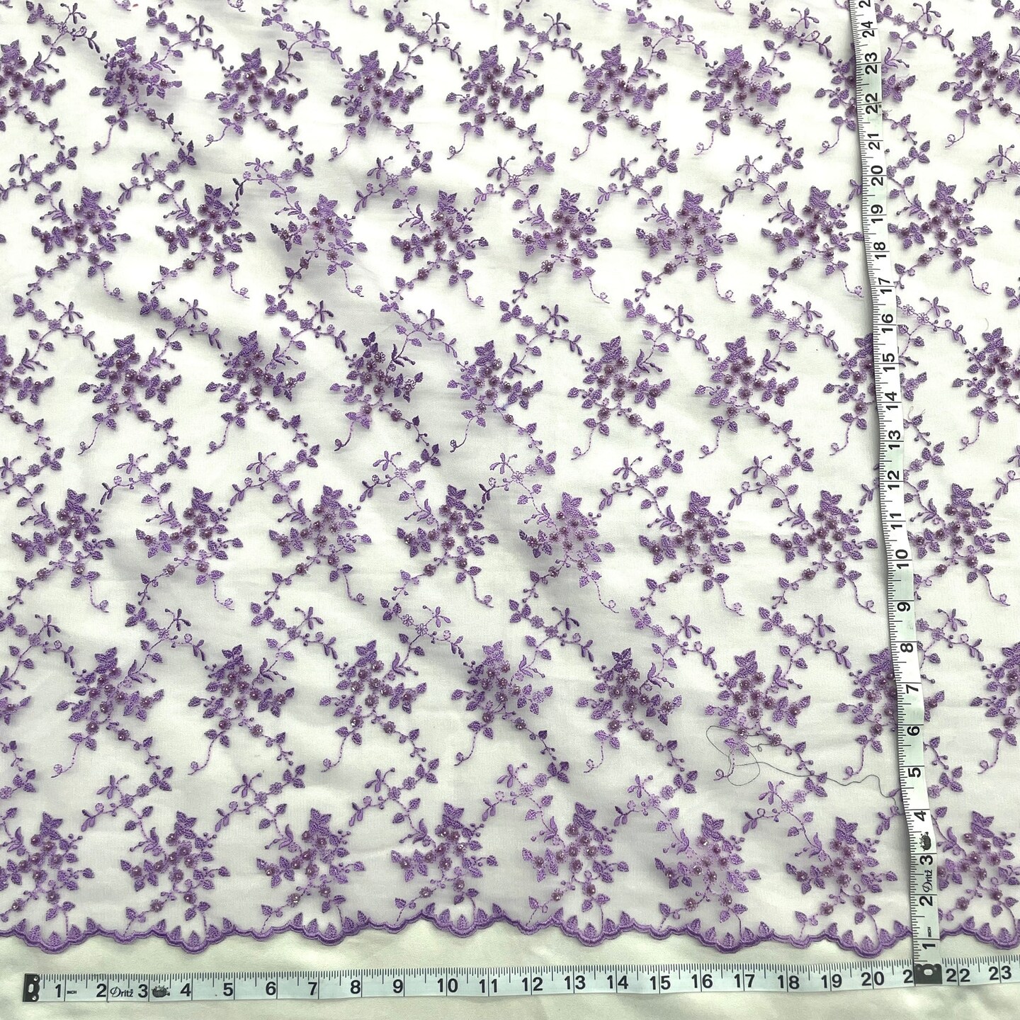1 Yard Fuchsia Beaded Lace Fabric Embroidered on Polyester Net Mesh 53 Inch Width