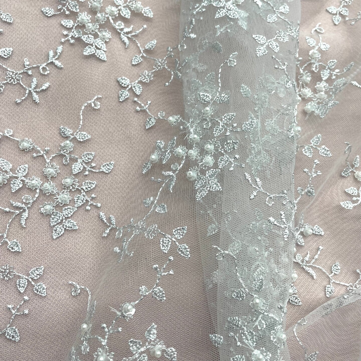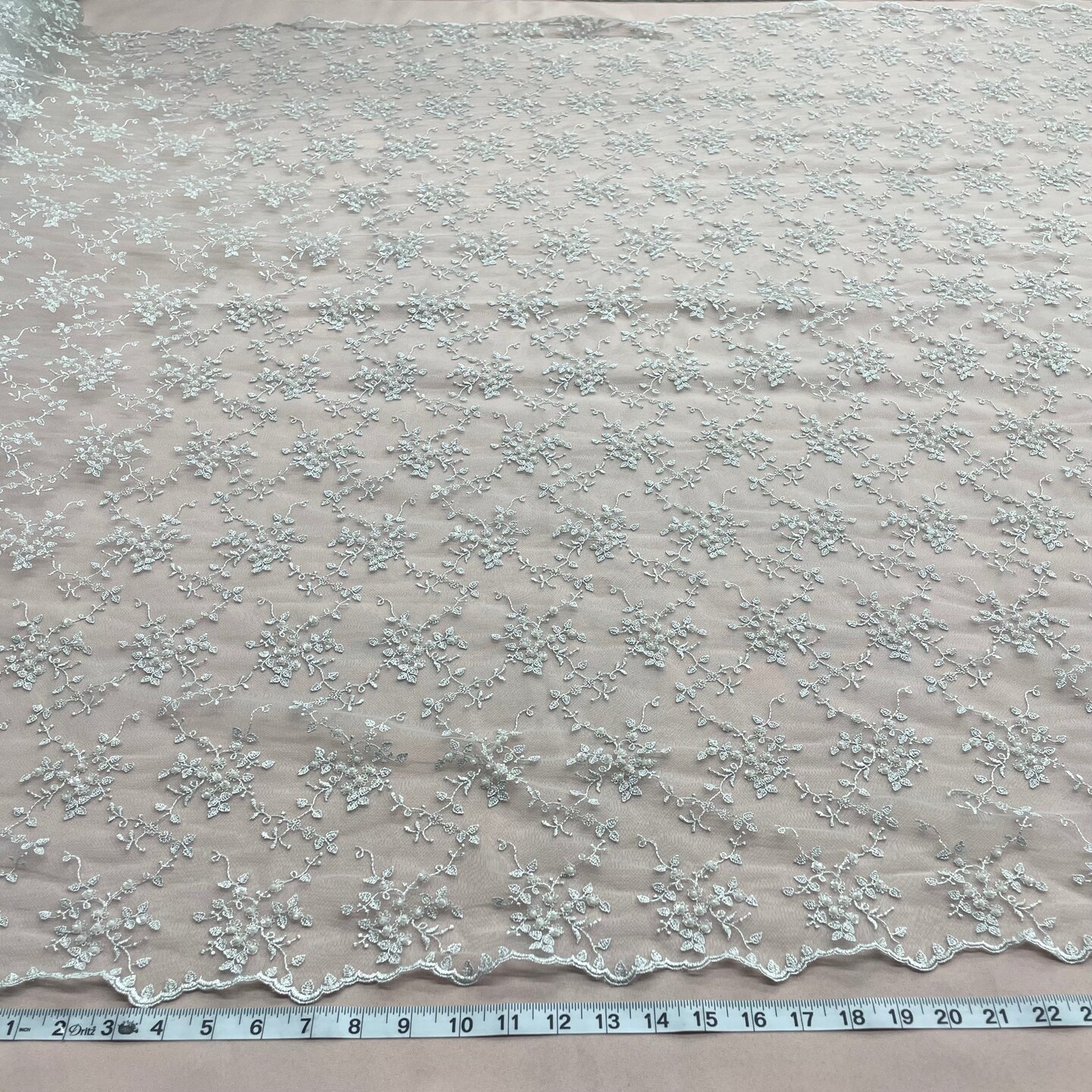 1 Yard Fuchsia Beaded Lace Fabric Embroidered on Polyester Net Mesh 53 Inch Width