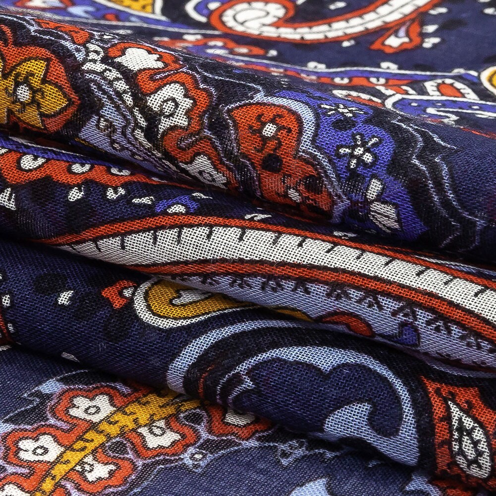1 Yard Gauzy Cotton Voile Navy Pompeian Red and Goldenrod Paisley Fabric