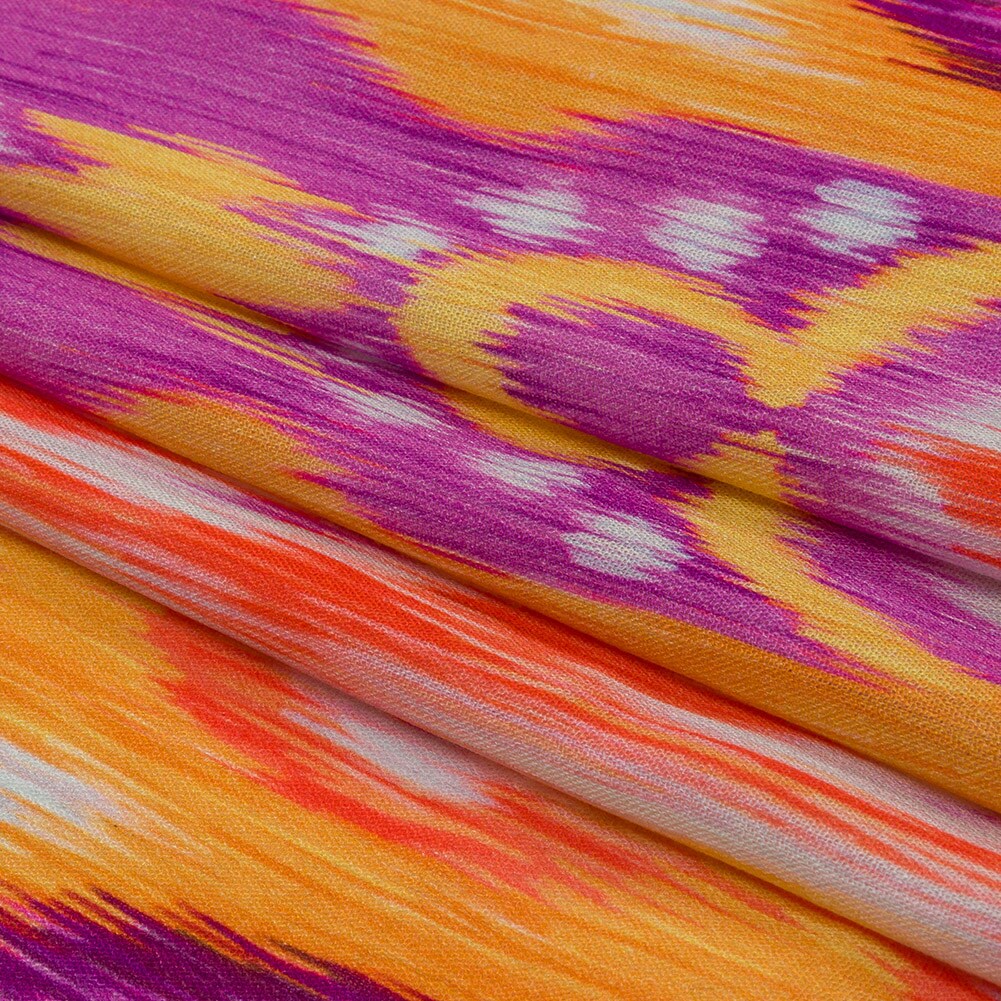 1 Yard Gauzy Wrinkled Rayon Woven Print Purple and Yellow Ikat Paisley Stripes 53 inch Width