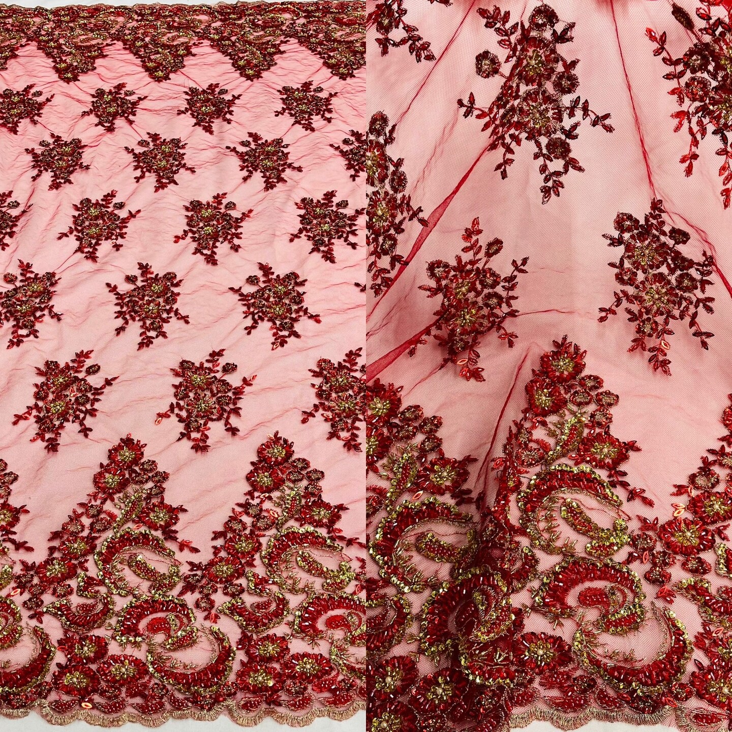 1 Yard Glamorous Black and Gold Beaded Sequined Lace Fabric on Polyester Net Mesh 52 inch Width