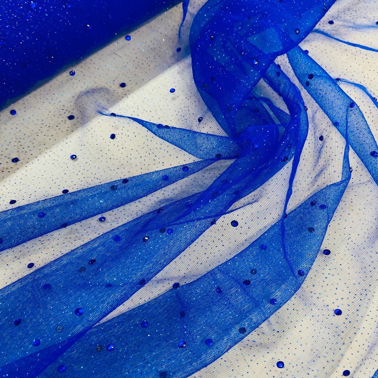1 Yard Glitter Mesh Fabric with Scattered Rhinestones 60" Wide, 2-Way Stretch Sparkle Mesh for Gowns, Bridal Wear & Costumes