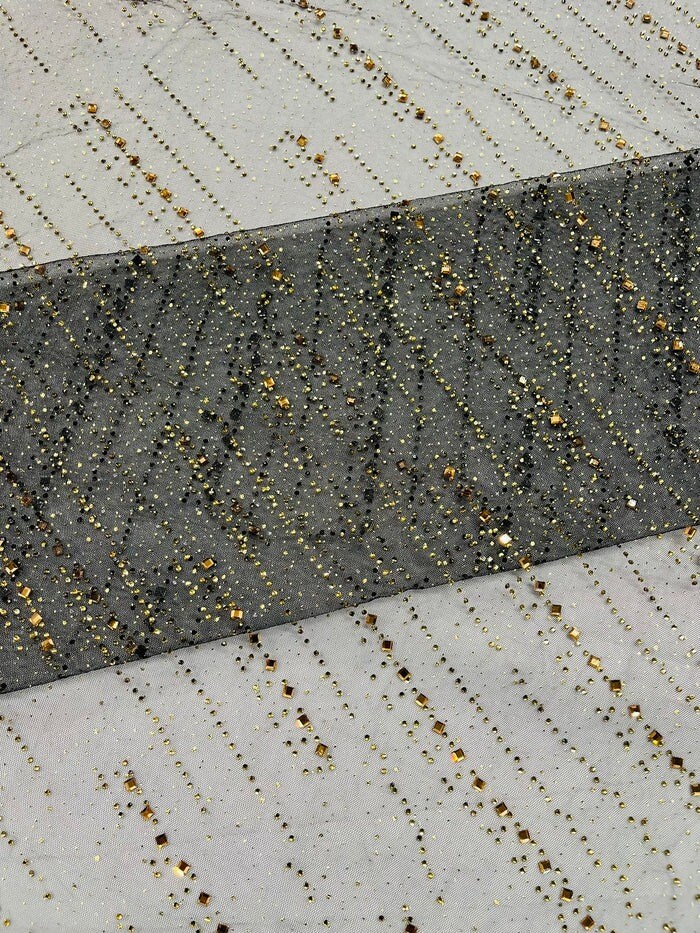1 Yard Glitter Rhinestone Mesh Fabric Sheer Sparkle Material for Dresses, Décor & Costumes