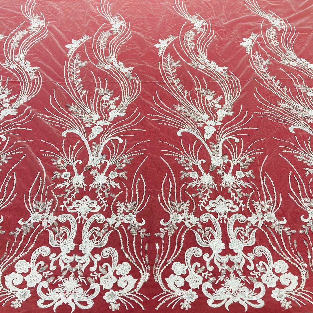 1 Yard Gold Beaded Lace Fabric on 100% Polyester Net Mesh, Embroidered Lace Fabric, 54" Width