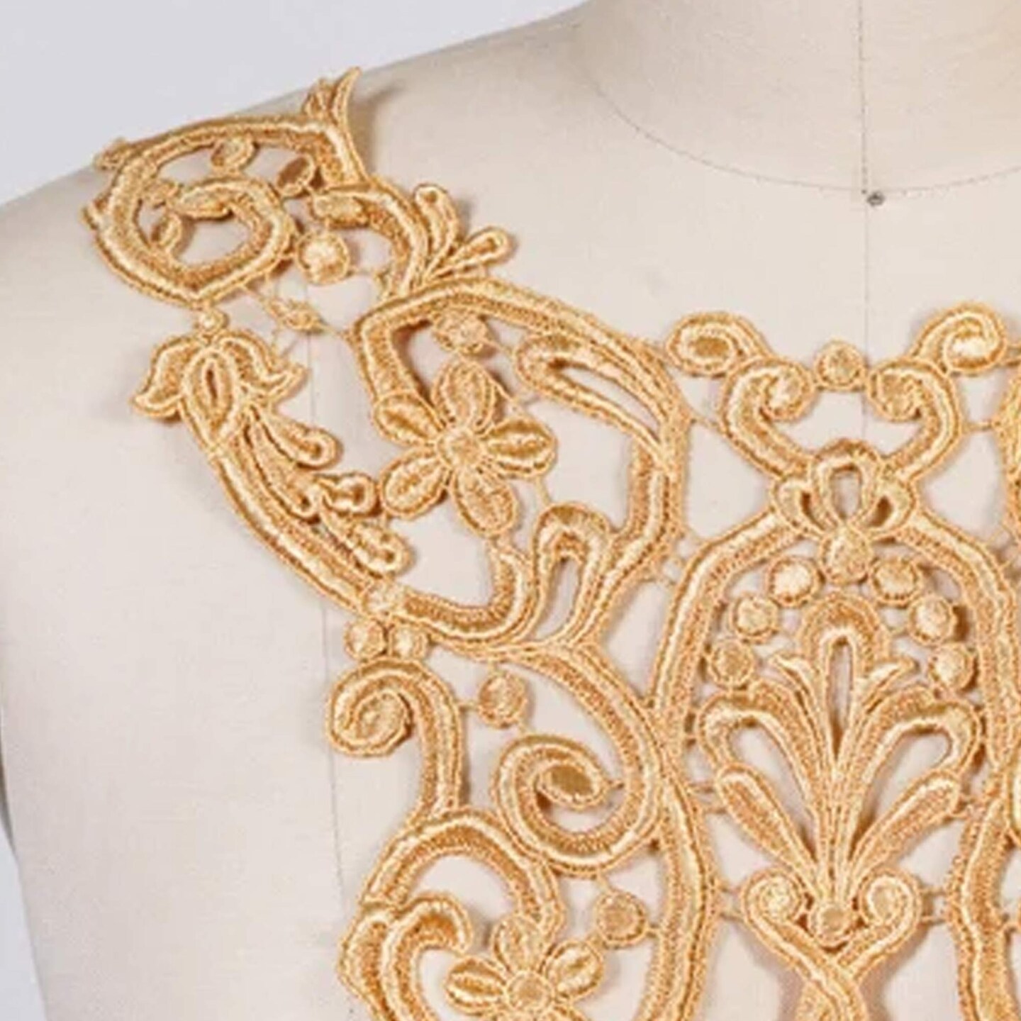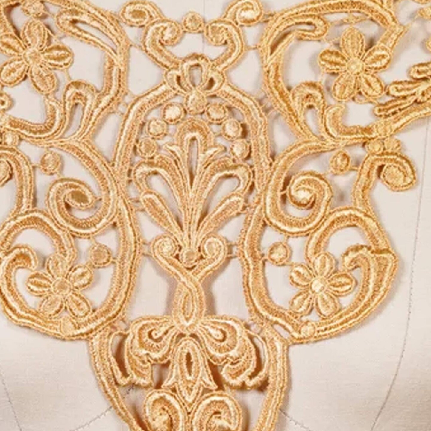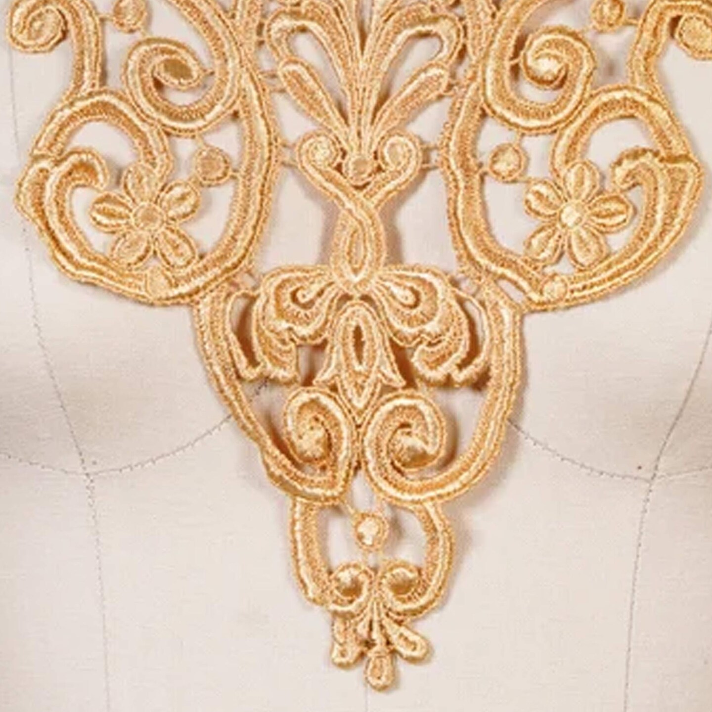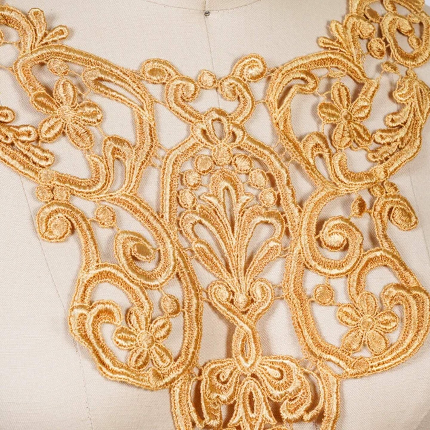 1 Yard Gold Venice Lace V Collar Applique Large Victorian Style Oversized Embellishment for Gowns