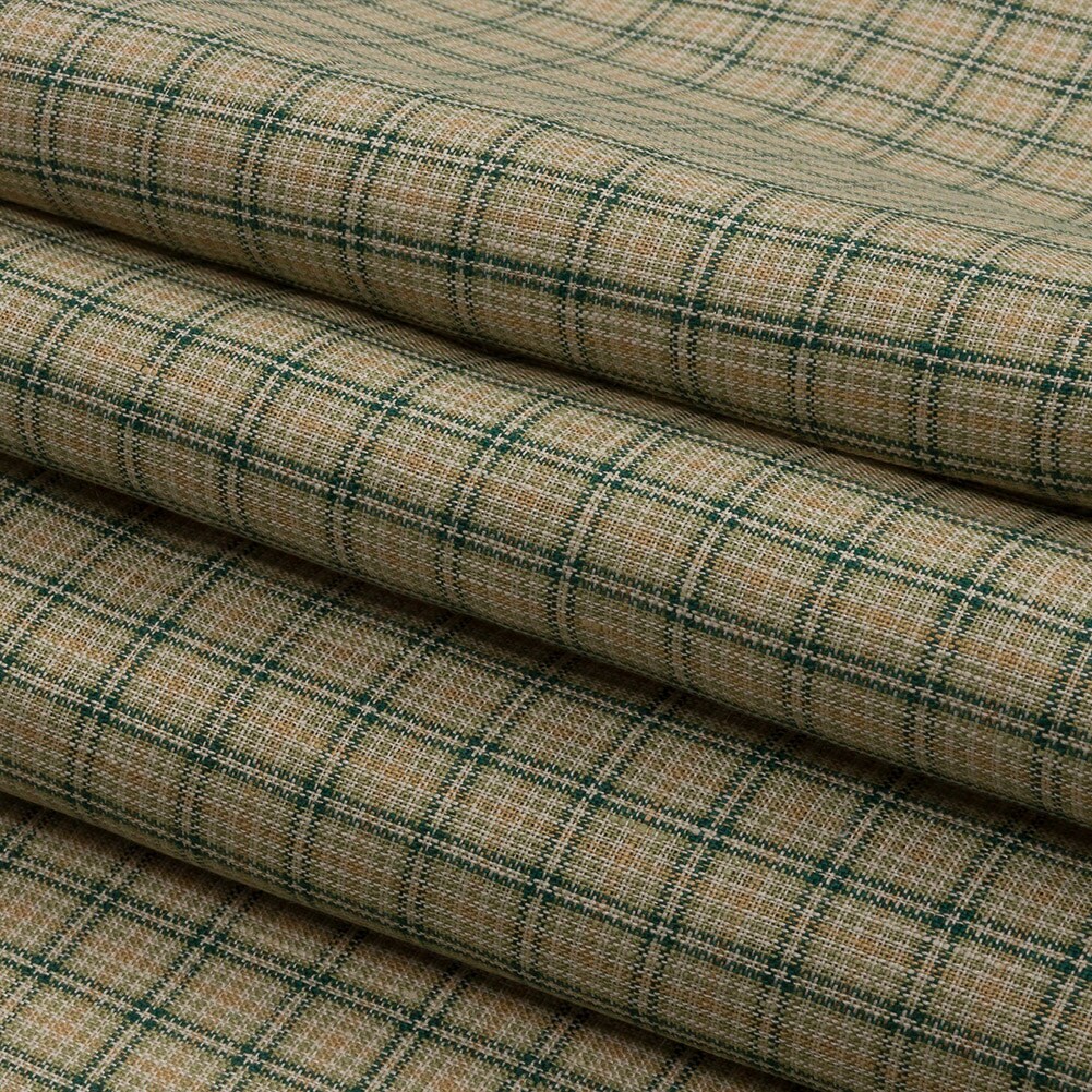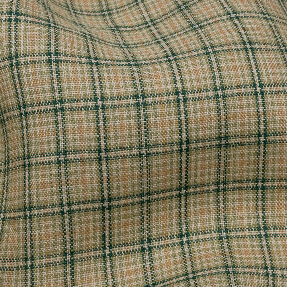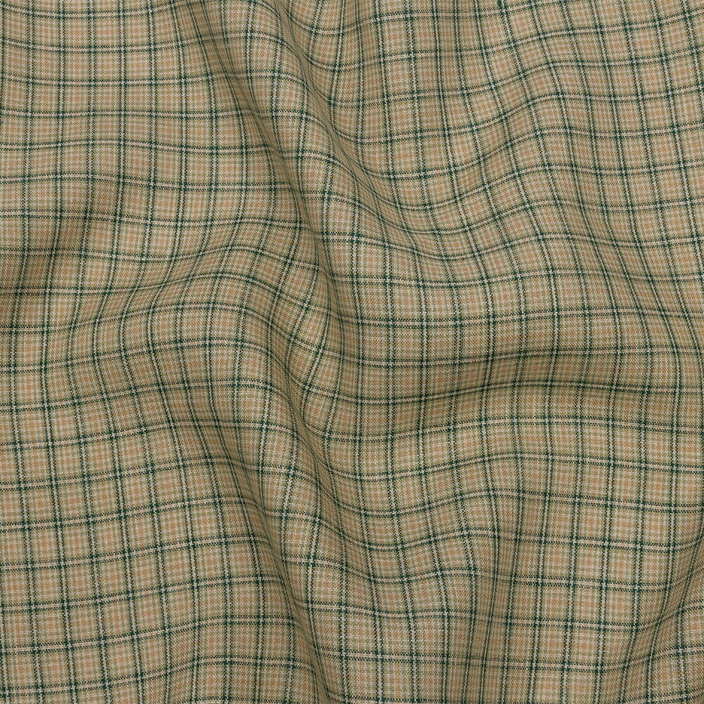 1 Yard Green and Beige Checked Lightweight Linen Woven Fabric