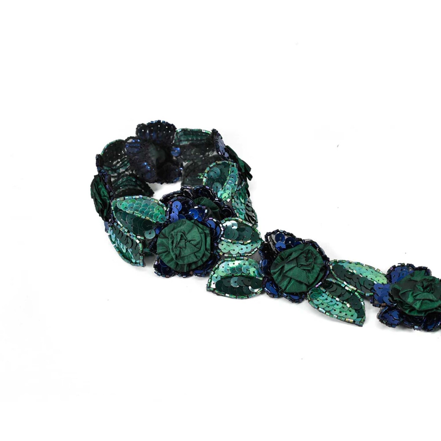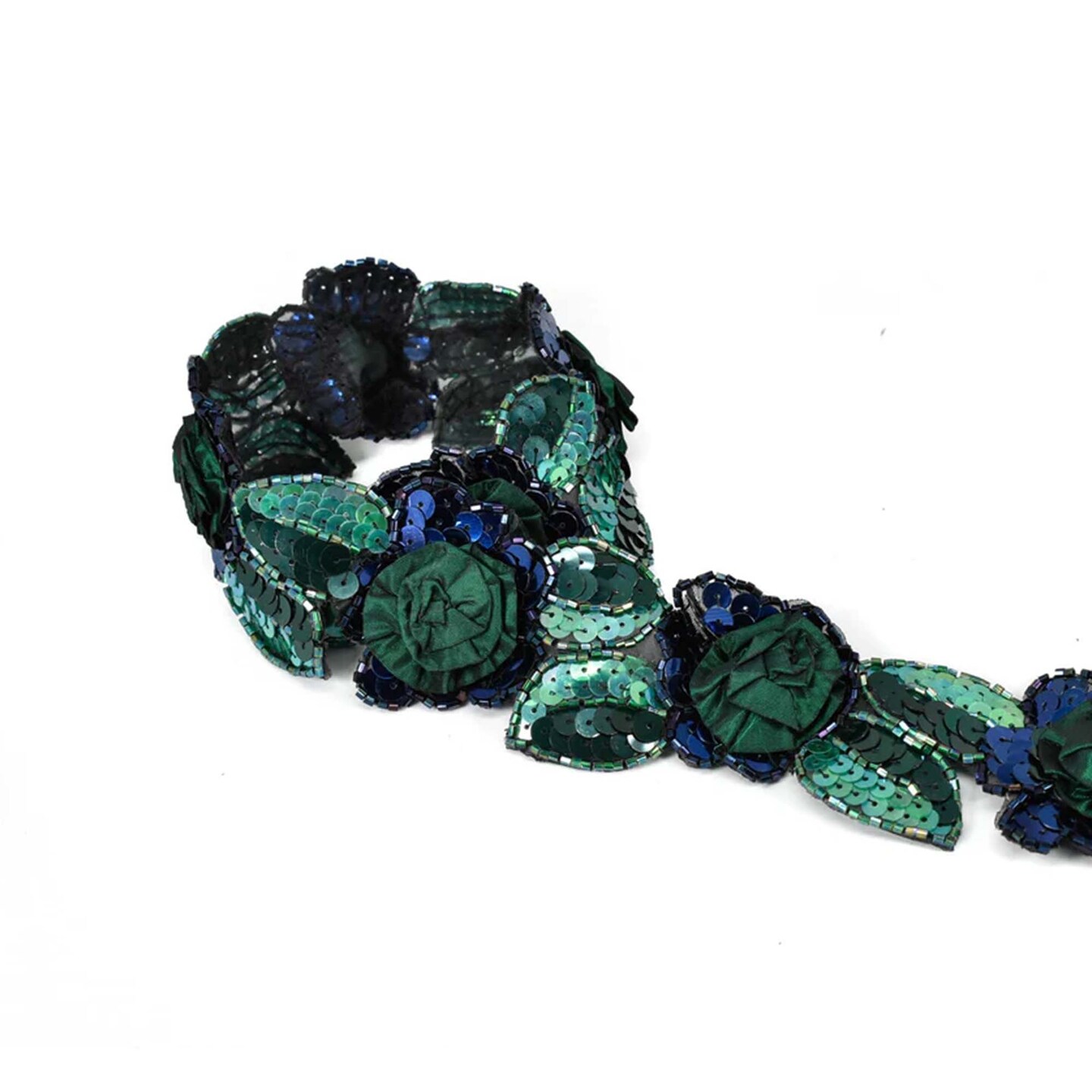 1 Yard Green Flower Sequins Beaded Applique Decorative 2.25 Inch Width