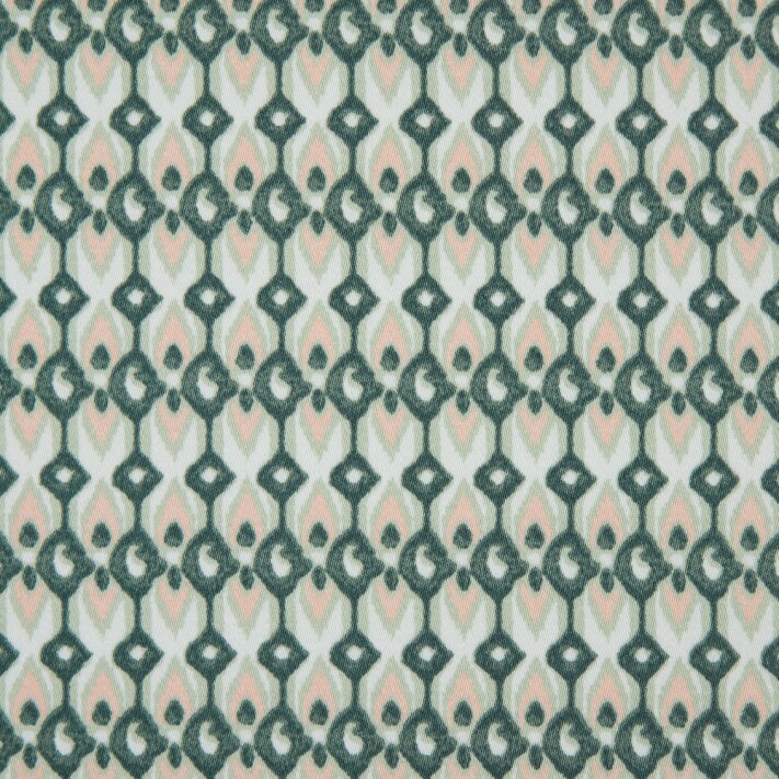 1 Yard Green Geometric Ikat Printed Stretch Cotton Sateen