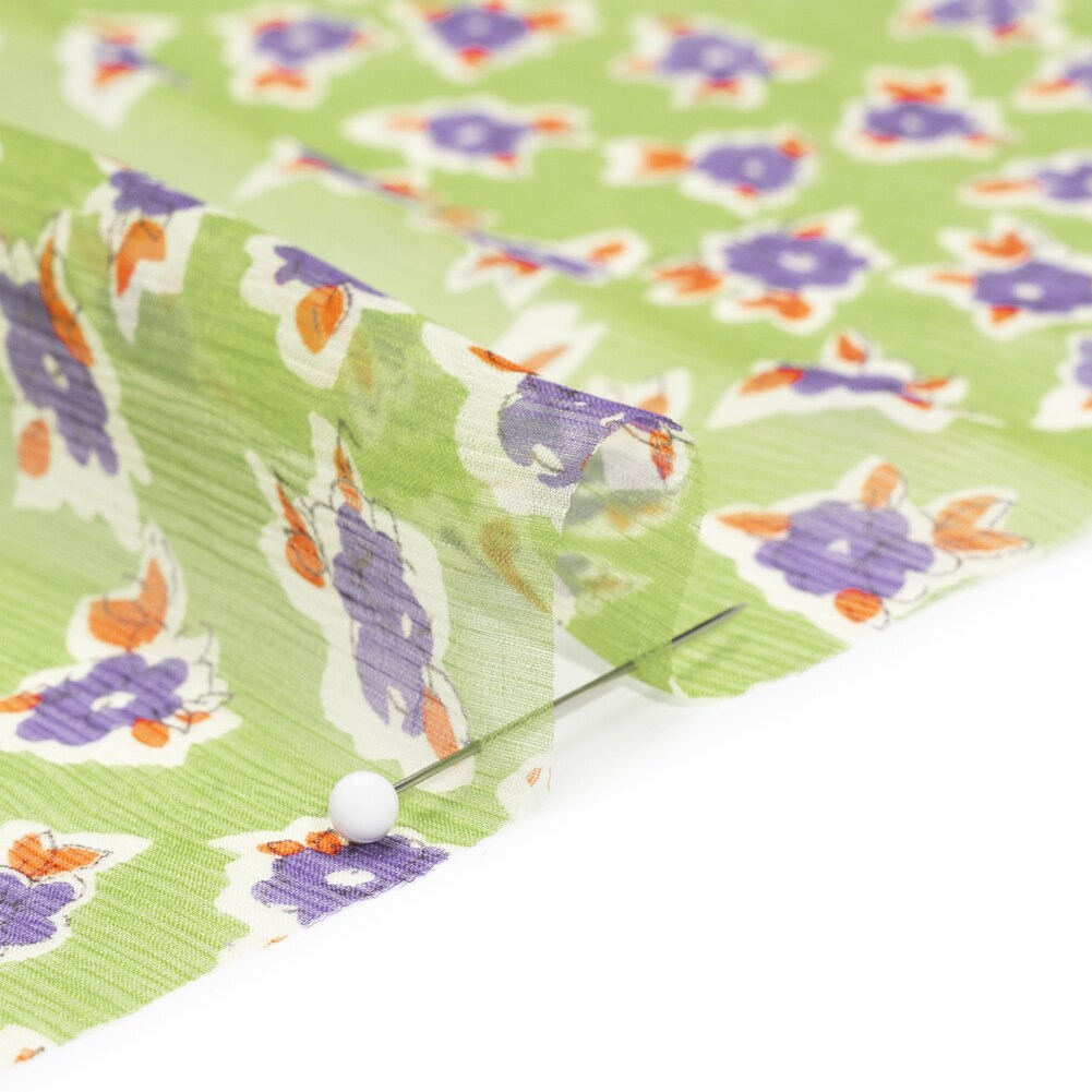 1 Yard Green, Purple & Orange Little Flowers Crinkled Silk Chiffon Playful Design, 54 Inches Wide