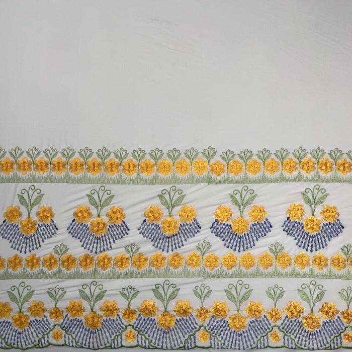 1 Yard Hibiscus Double Border Embroidered Fabric 100% Polyester 56 Inches Width