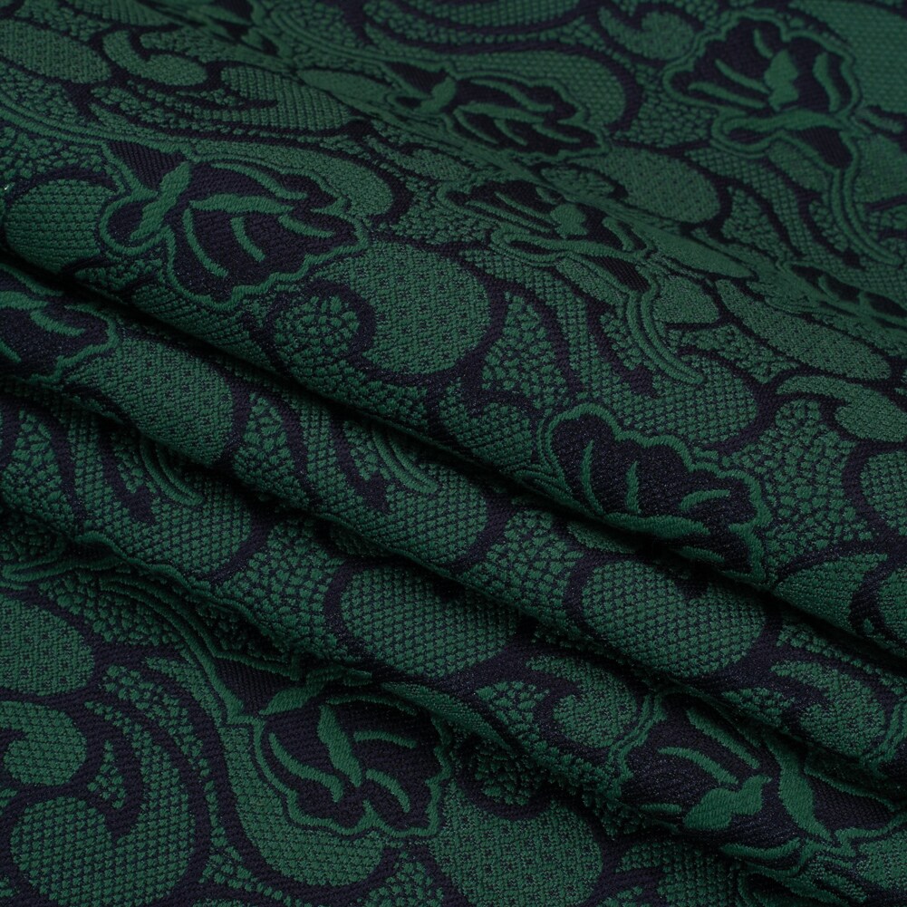 1 Yard Hunter Green Black Lace Floral Jacquard Cotton Polyester Fabric