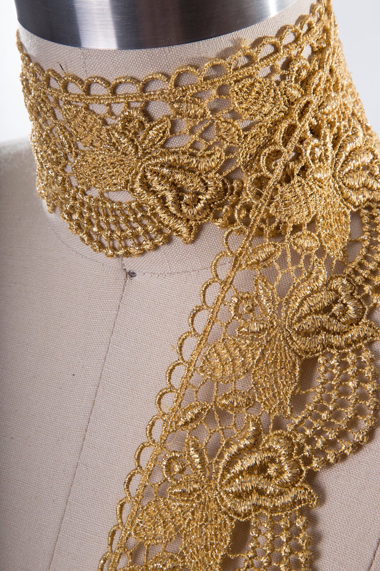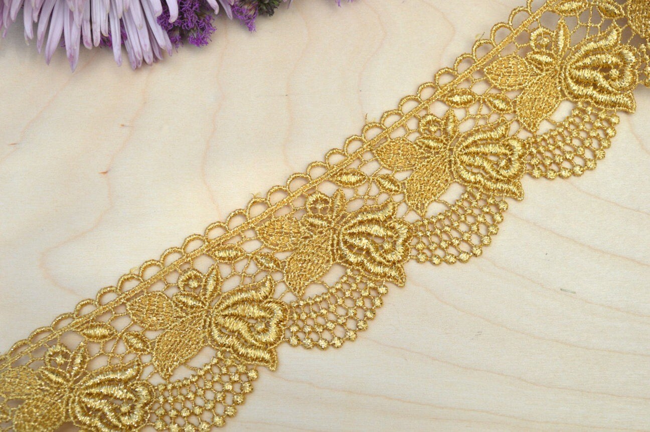 1 Yard Ignaces Gold Metallic Floral Roses Scalloped Venice Lace Trim for Gowns Costumes and Home Decor 2 Inch wide