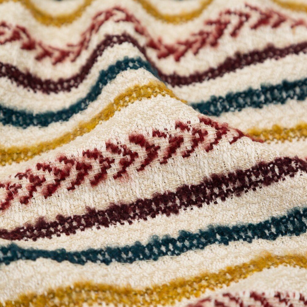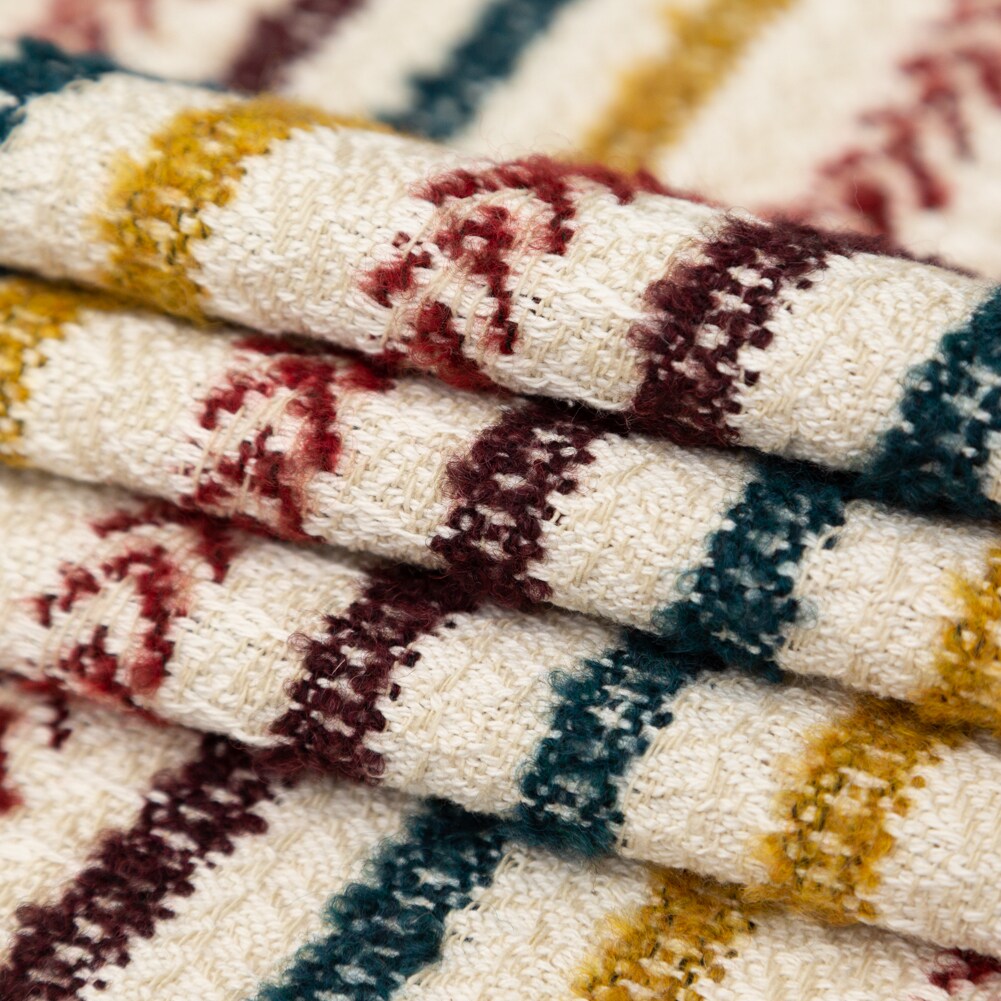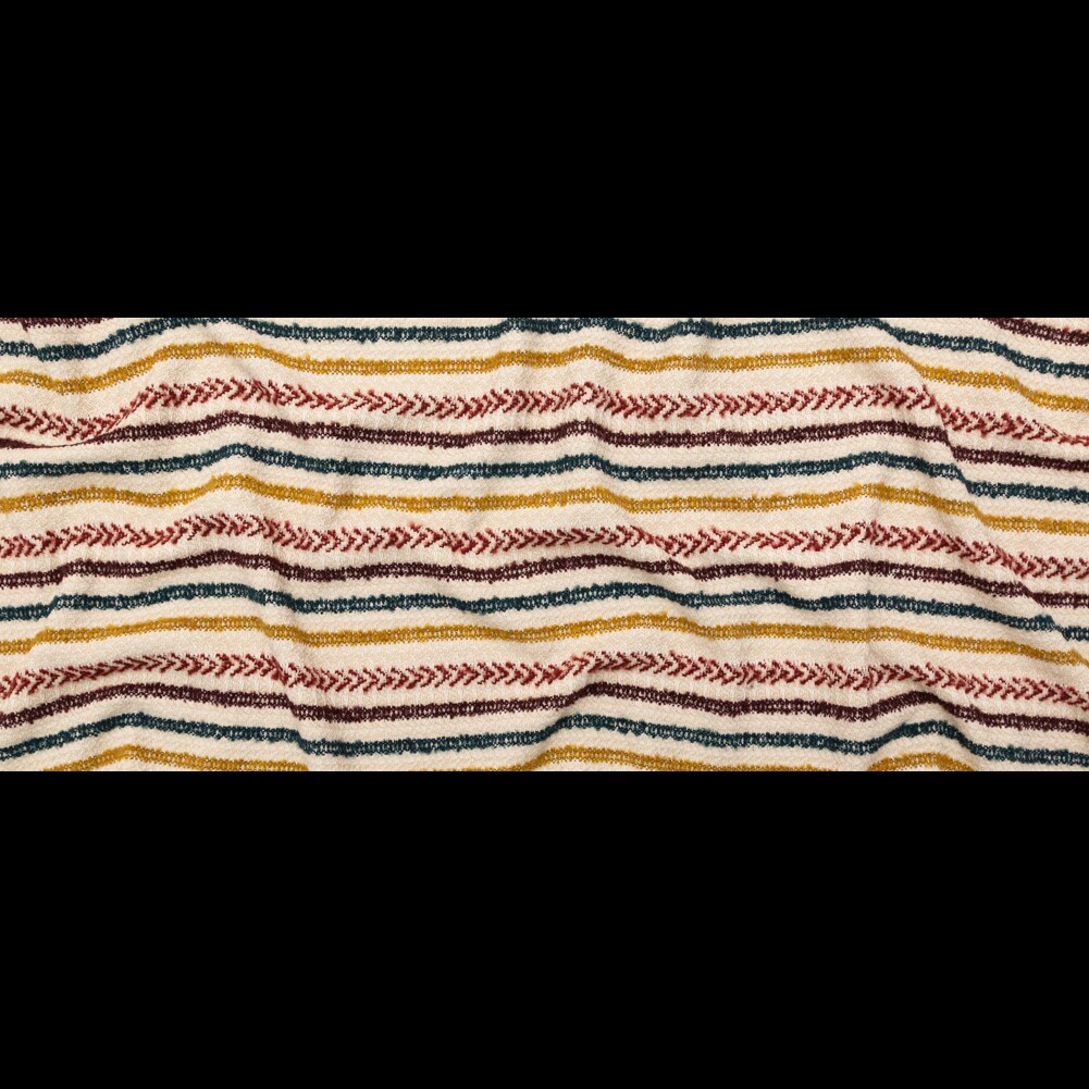 1 Yard Italian Ivory, Maroon, Cumin and Teal Striped Blended Tweed Fabric