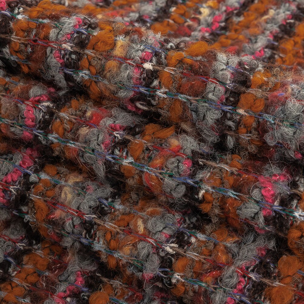 1 Yard Italian Pumpkin, Drizzle, and Fandango Pink Striped Wool Boucle Knit 58’’ Width