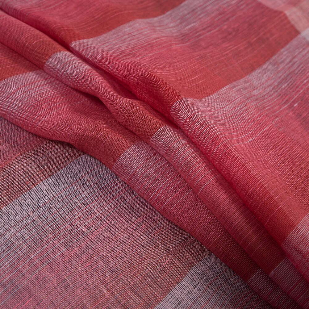 1 Yard Italian Red Pink and White Plaid Linen Scrim Fabric for Pants Blazers and Dresses