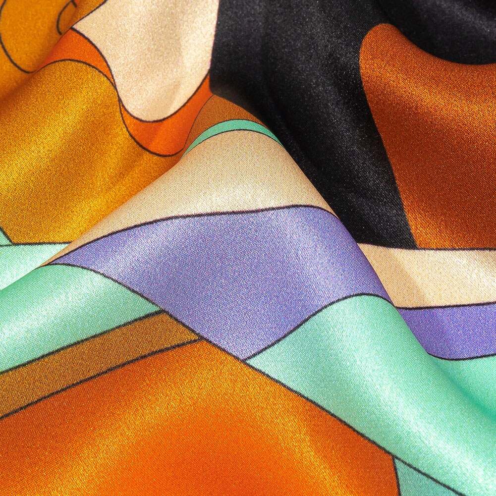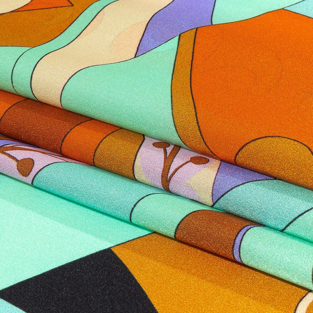 1 Yard Italian Silk Charmeuse Brown & Orange Seafoam Leafy Abstract Print 52 Inches Wide